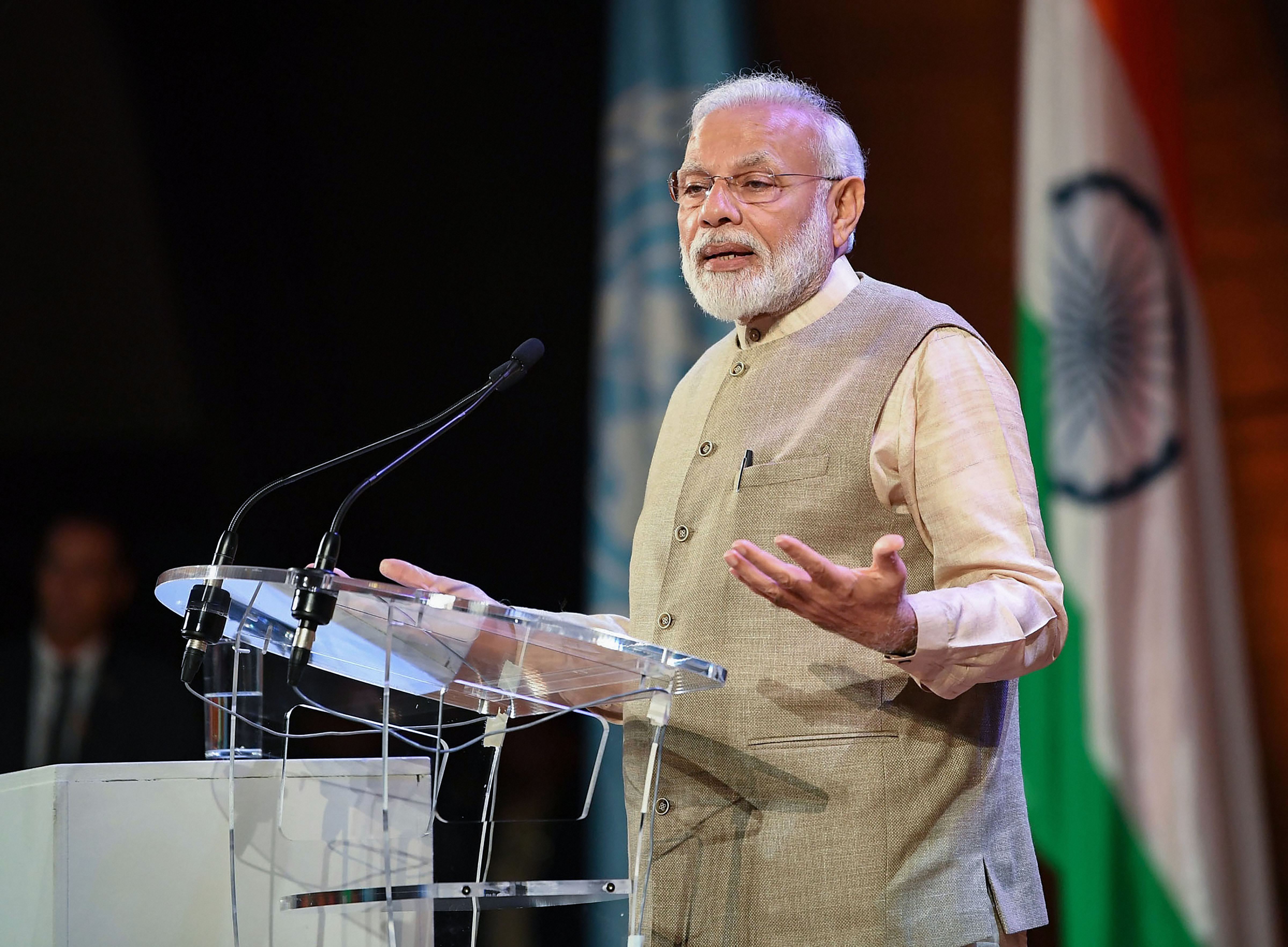 Paris: Prime Minister Narendra Modi addresses Indian community in France at UNESCO HQ in Paris, France. (PIB/PTI Photo)