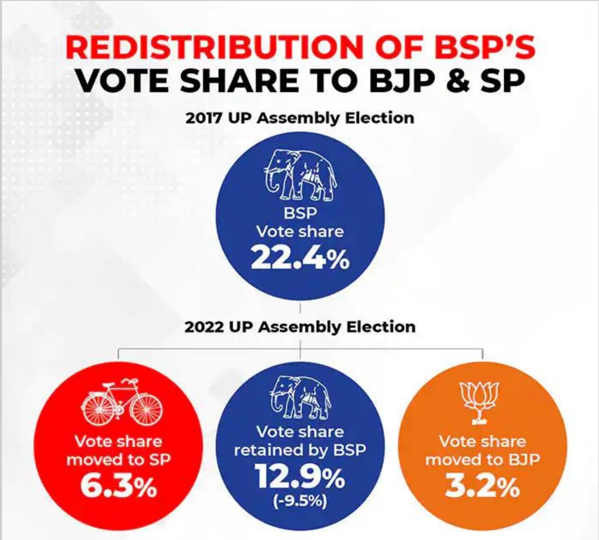 This decision proved disastrous for the BSP, as its vote share declined to 12.9%, a decline of 9.3% compared to the 2017 Vidhan Sabha polls, and it could win just 1 seat, that is, down 18 seats.