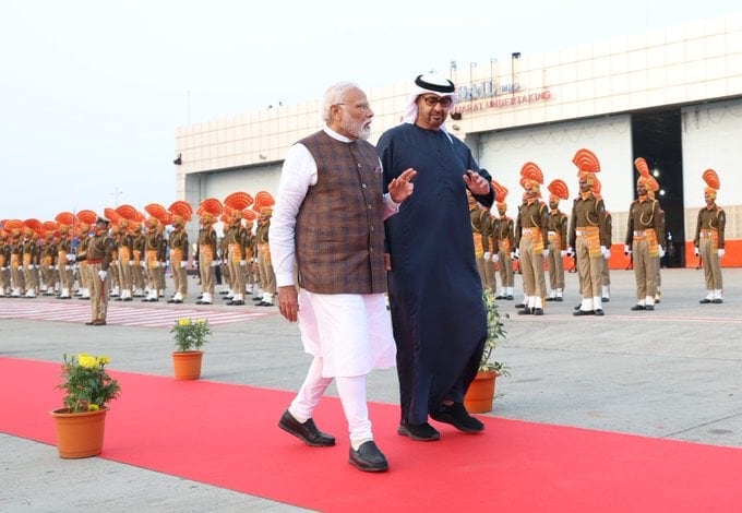 Modi received the UAE president and ruler of Abu Dhabi at the Ahmedabad airport and the two leaders participated in a roadshow in the evening.