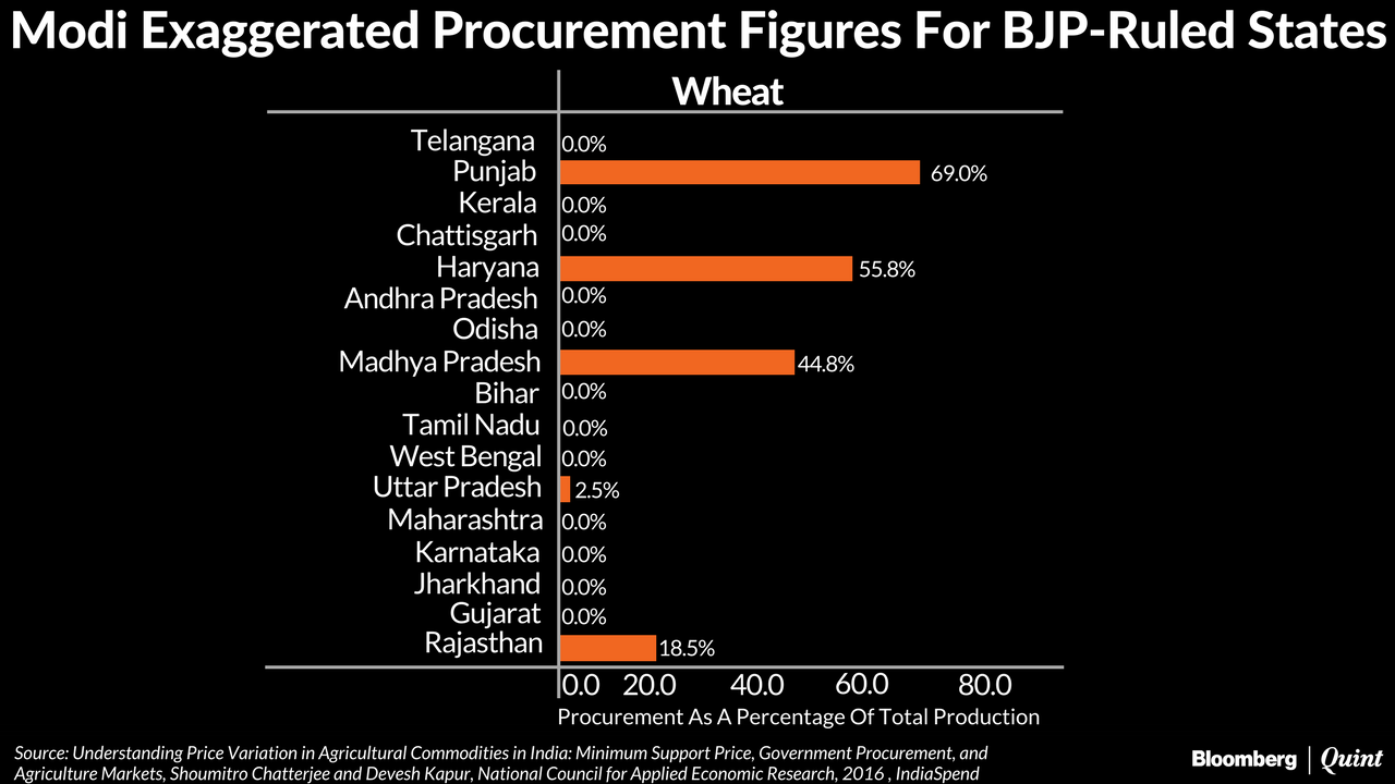 Modi was wrong about Rajasthan. Rajasthan farmers sold 18% of their wheat to government procurement agencies in 2014-15, not 50% as the PM claimed.