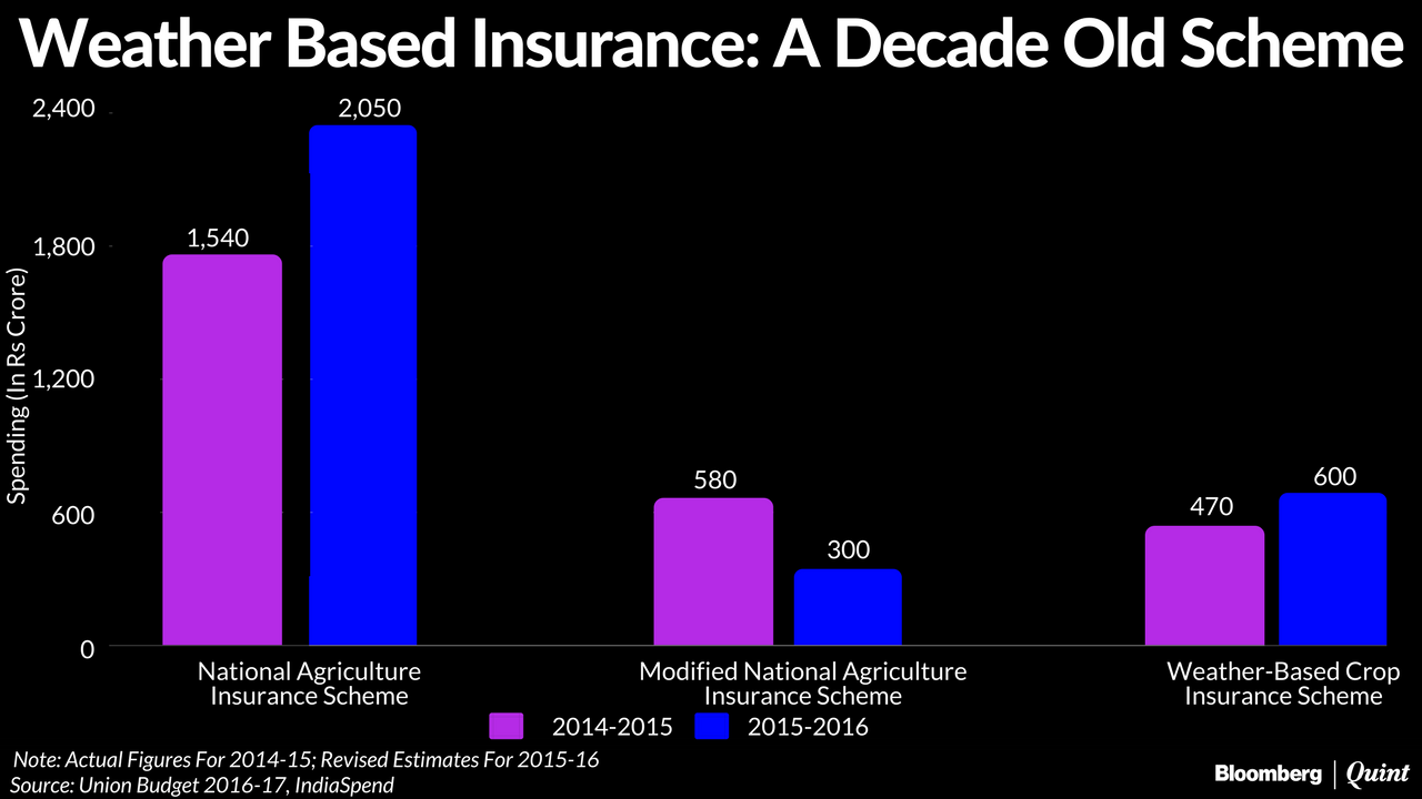 The crop-insurance spending included three parts: National Agriculture Insurance Scheme (NAIS), Modified National Agriculture Insurance Scheme (MNAIS) and WBCIS.
