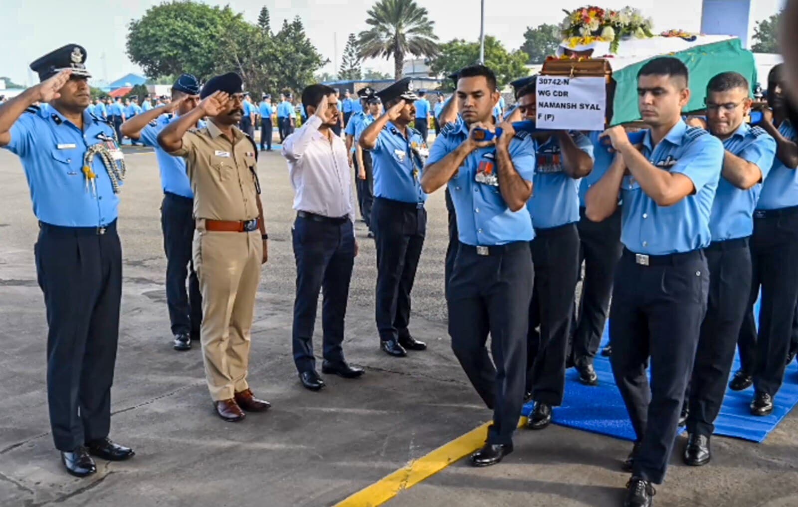 'To the mortal remains of Wing Commander Namansh Syal, who laid his life in line of duty, Coimbatore District Collector, Pavankumar G Giriyappanavar laid a wreath at Air Force Station this morning,' sources said.