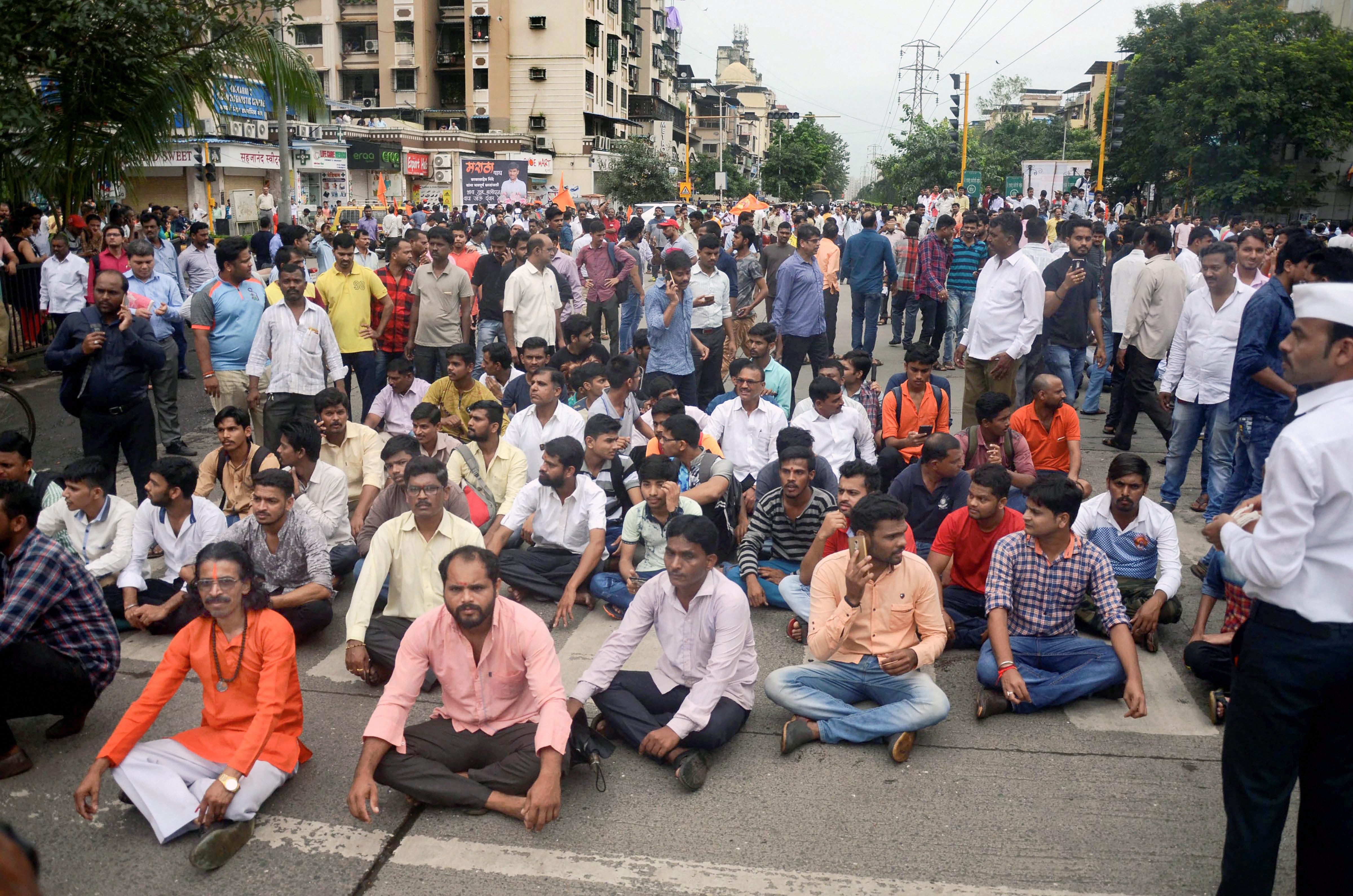 At some places, protesters raised slogans against Maharashtra Chief Minister Devendra Fadnavis and Public Works Department Minister Chandrakant Patil for allegedly insulting sentiments of the Maratha community.