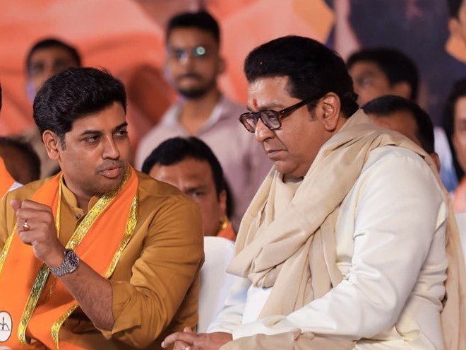 Eknath Shinde's son and two-time sitting MP Dr Shrikant Shinde alongside MNS chief Raj Thackeray at a campaign rally in Kalyan. (Source: X profile)