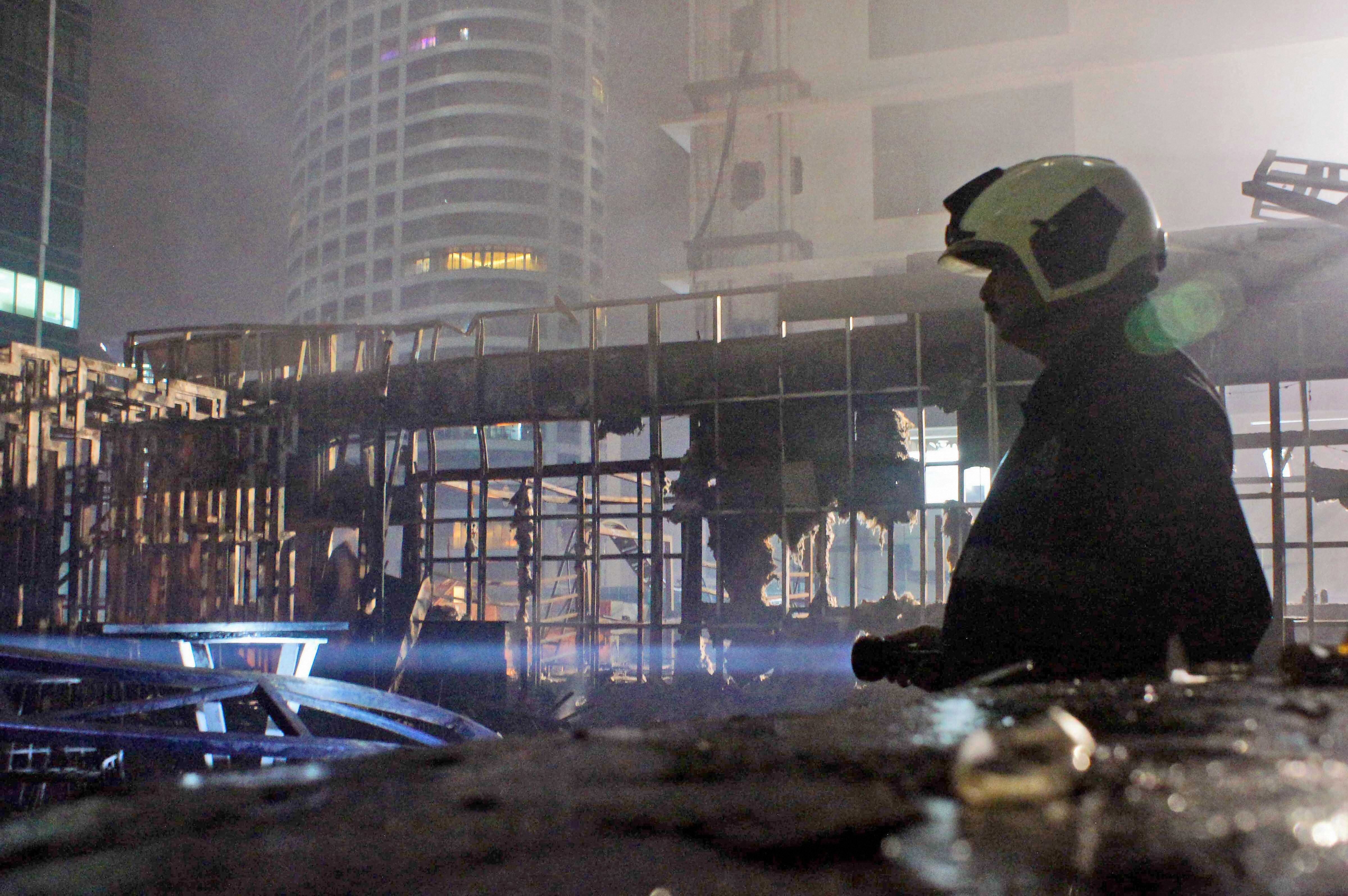 A fireman assists in rescue operations after a fire broke out in a building in Mumbai on Friday. At least 14 people were killed and as many injured after a major fire in Kamala Mills Compound in Lower Parel. (Source: PTI)
