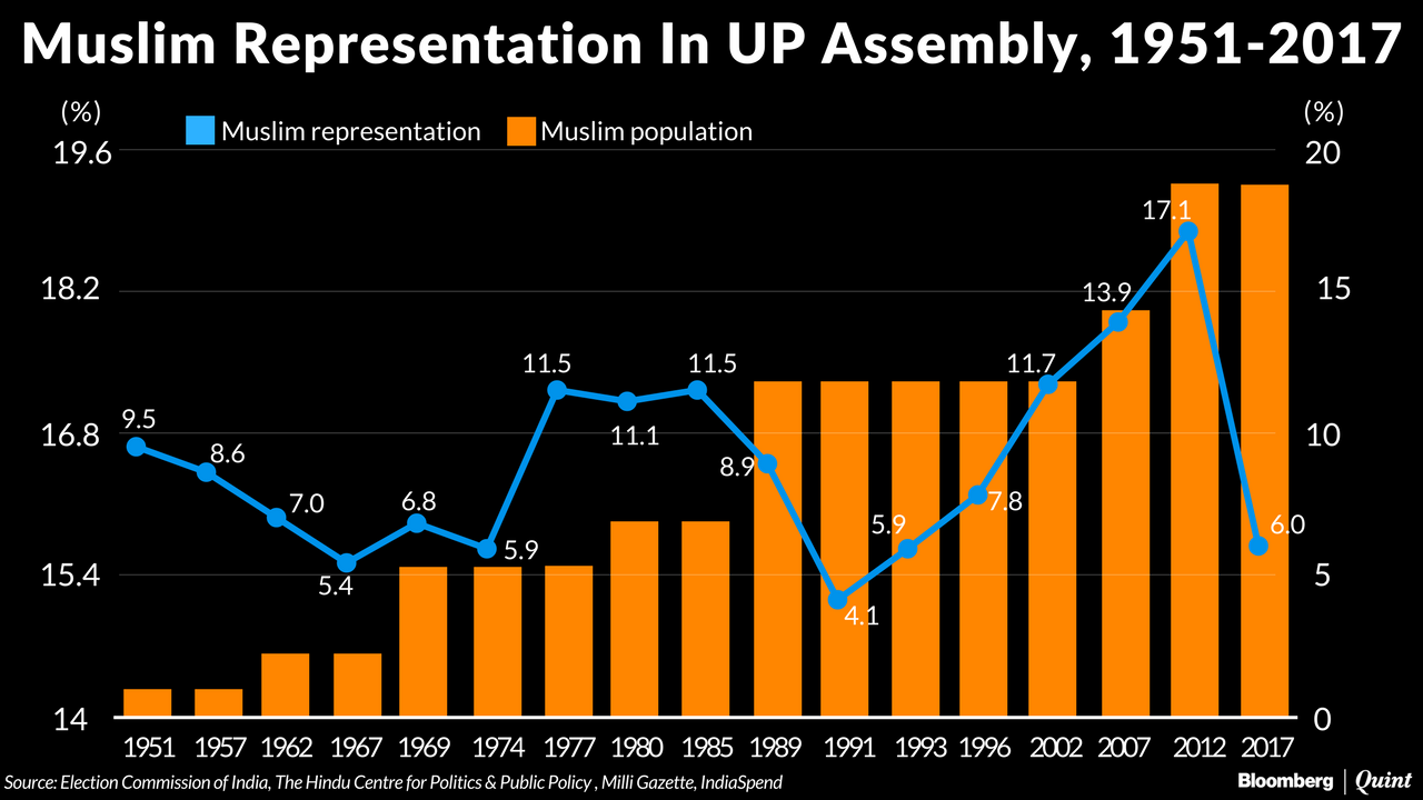With the 2017 Uttar Pradesh (UP) assembly elections, Muslim representation in India's most populous state has plummeted from 17.1 percent in 2012 to 5.9 percent.