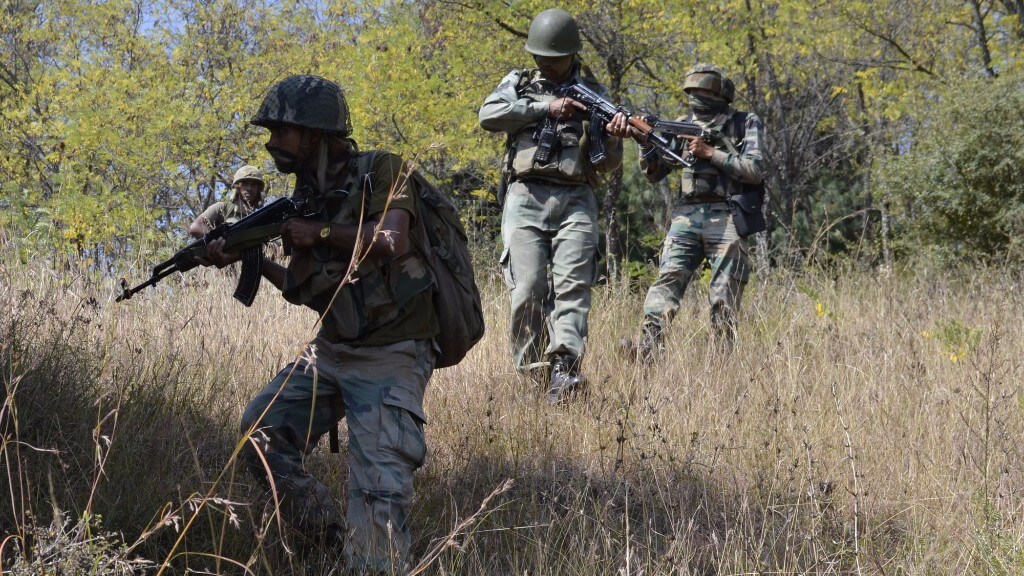 Soldiers in action during an encounter with militants on the Line of Control (LoC) in Uri sector of Jammu & Kashmir on 21 September 2016. (Photo: IANS)