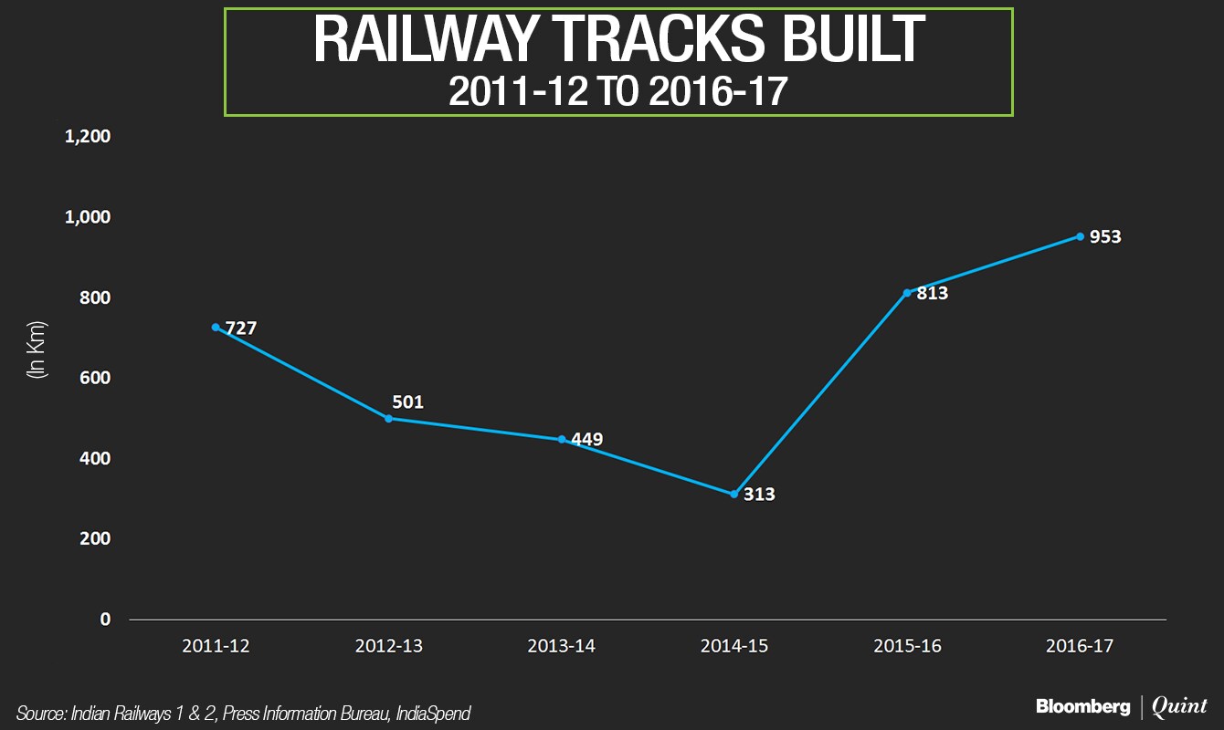 Fact: Partly true. The Modi government built 2,100 km of railway tracks in its three years against 1,677 km built in the Singh government's last three years, according to government data (click here, here and here).