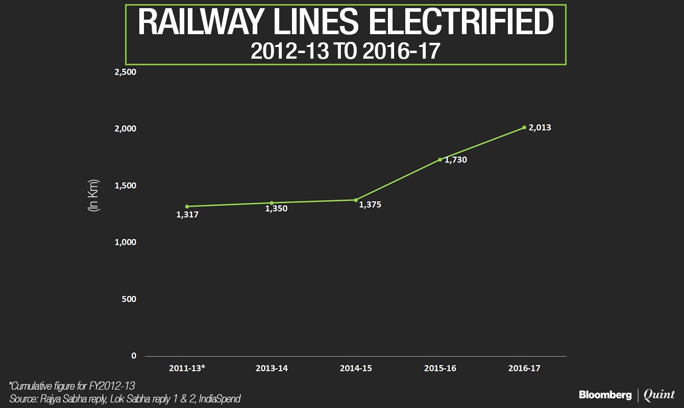 While the Singh government electrified 2,667 km of railway lines in its last three years, 5,118 km were electrified under Modi government's three years, according to official data.