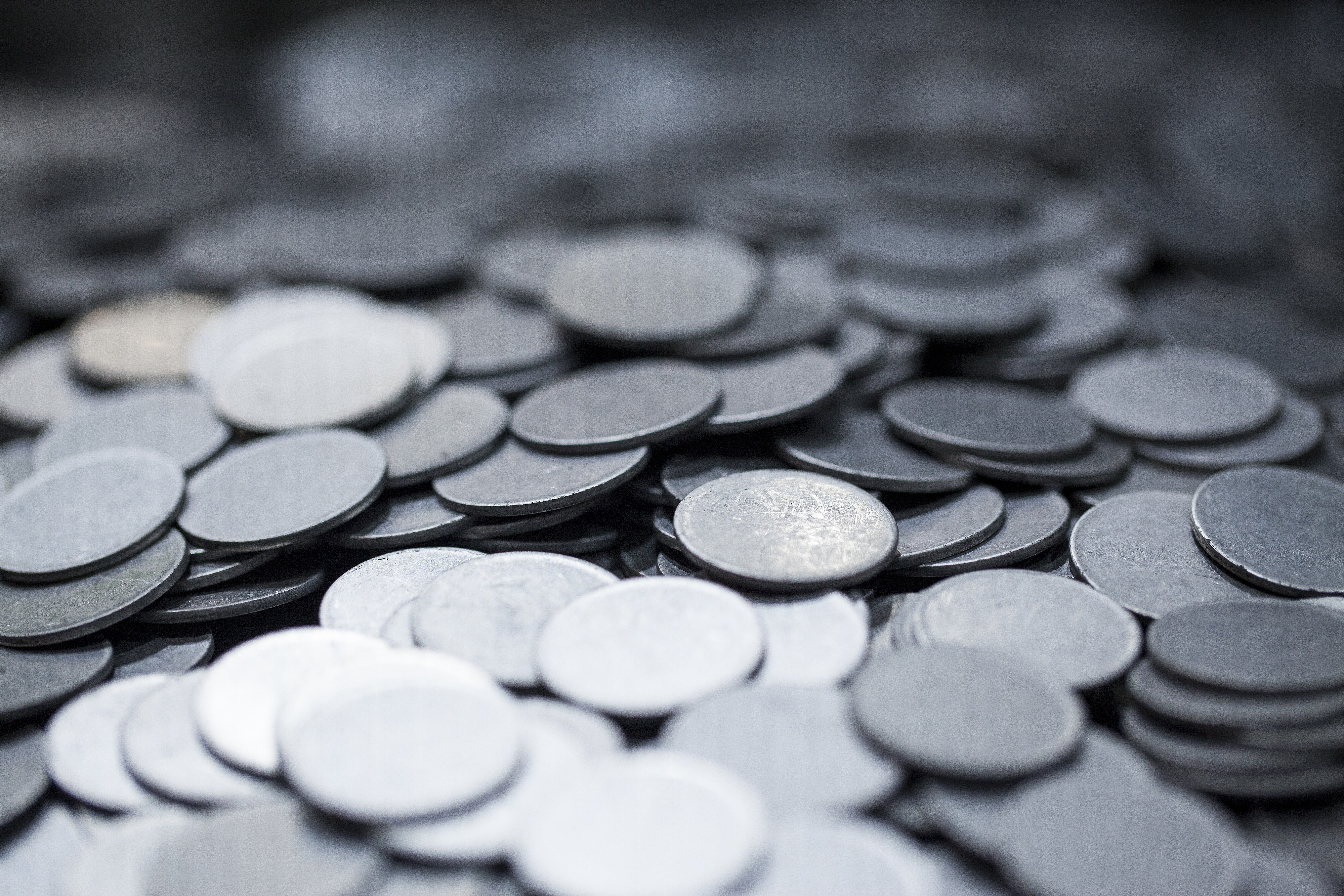 Freshly cut blank coins sit at the coin blanking shop at a factory in India. Photographer: Udit Kulshrestha/Bloomberg