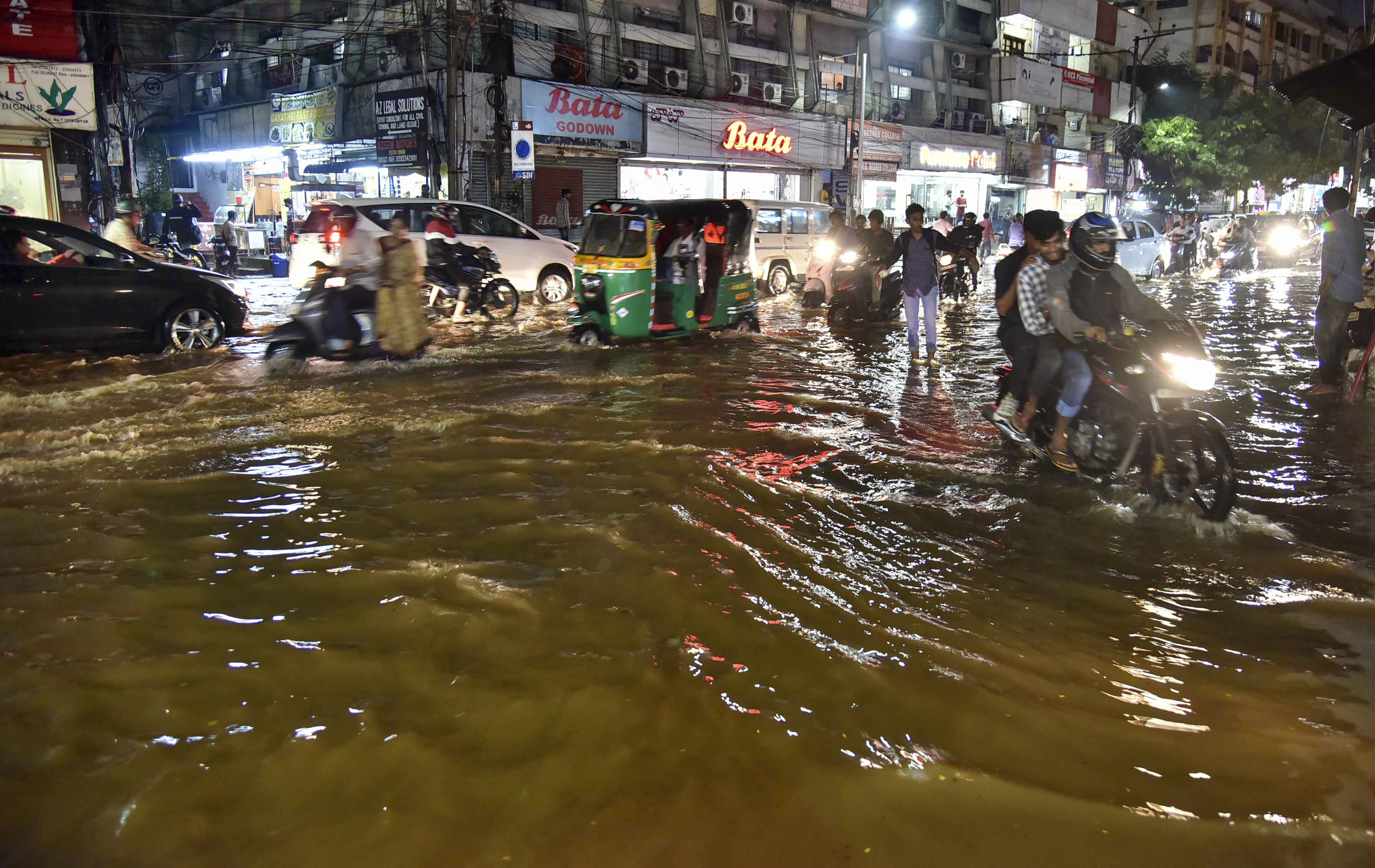 The heavy rains led to water stagnation at several places in the city, hitting free movement of traffic and the personnel of GHMC swung into action to clear the roads. Traffic snarls were witnessed in the IT hub at Gachibowli and other localities in the city. The water level in Hussain Sagar lake in the city touched 513.70 metres, GHMC sources said adding it can hold water upto 514.9 metres.