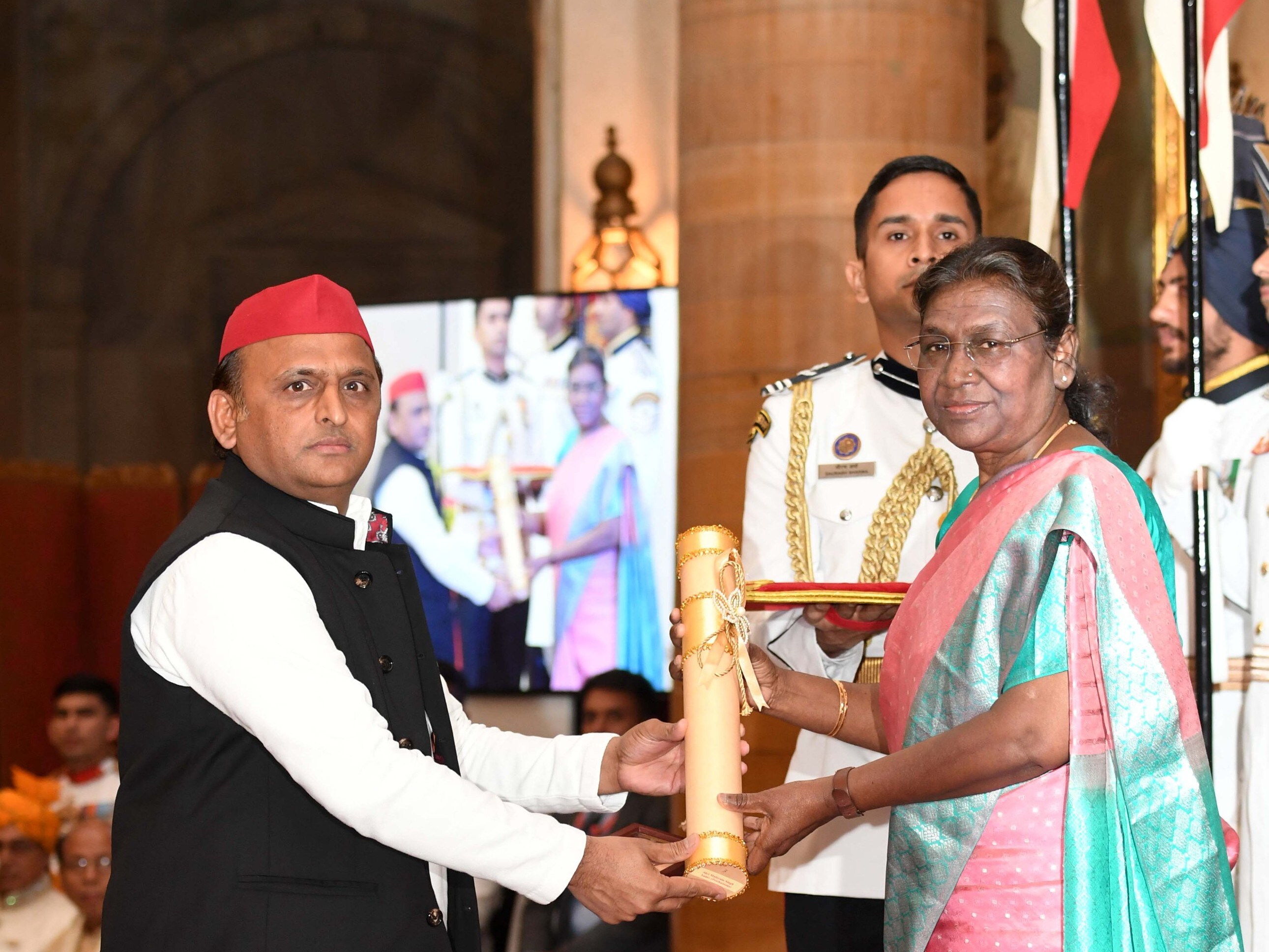 Veteran socialist leader and former Uttar Pradesh chief minister Late Mulayam Singh Yadav and medical professional Dilip Mahalanabis, known globally for his work on oral rehydration solution, were among those conferred the Padma Vibhushan award by President Droupadi Murmu on Wednesday.