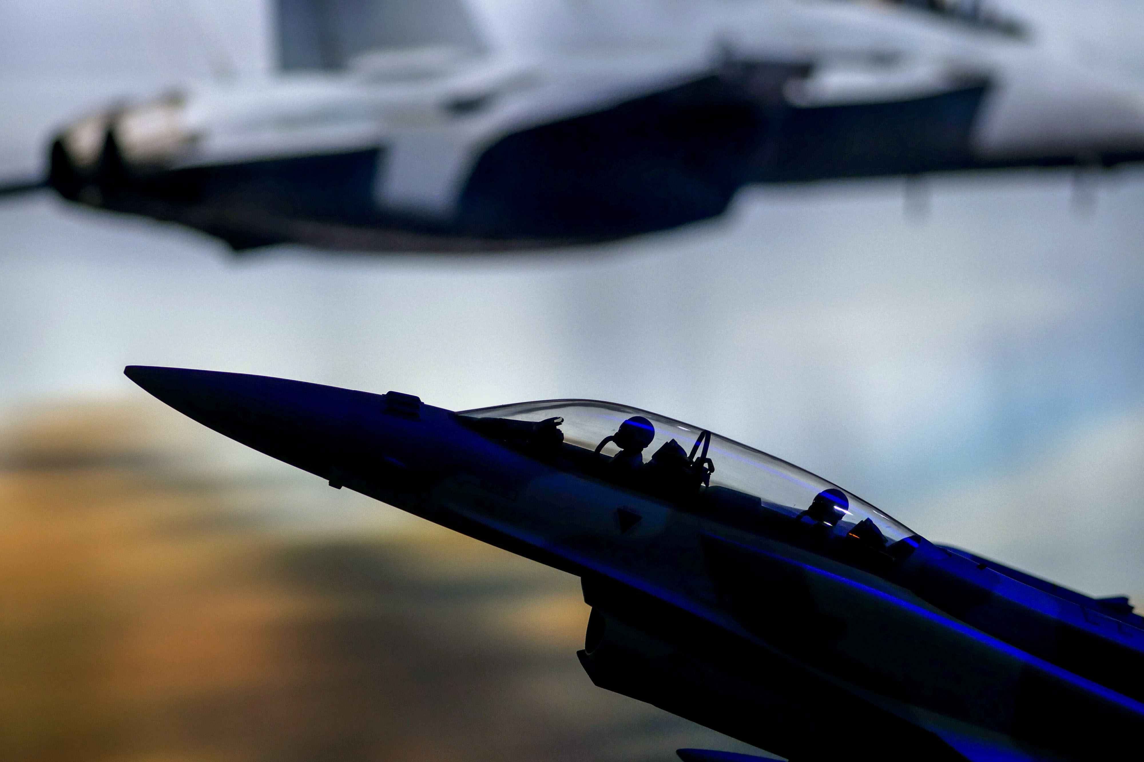 A model of an F-16 fighter jet. (Photographer: Dhiraj Singh/Bloomberg)