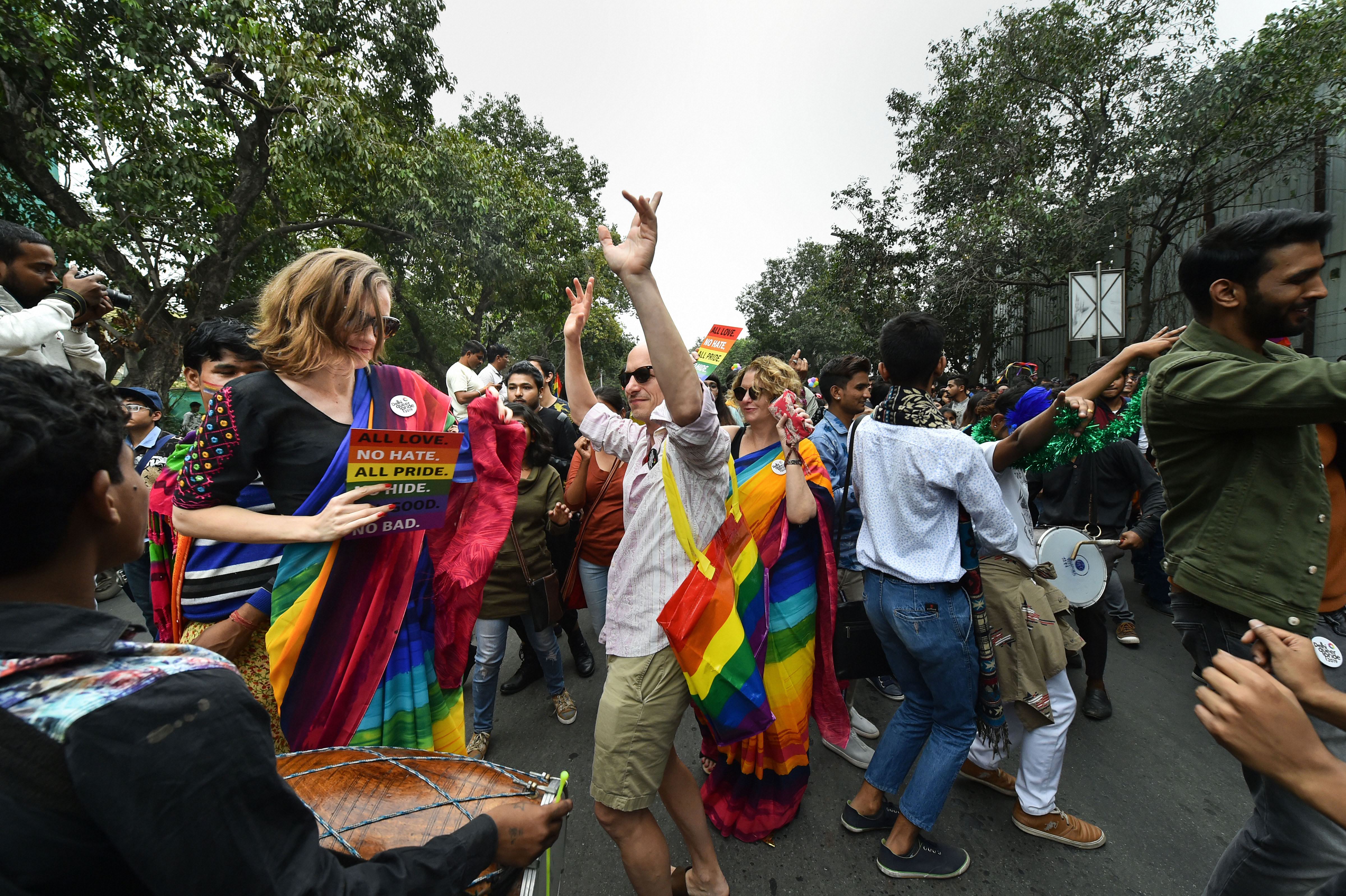 Members and supporters of the lesbian, gay, bisexual, transgender (LGBTQI) participate in the annual Delhi Queer Pride parade in New Delhi, India (Source: PTI)