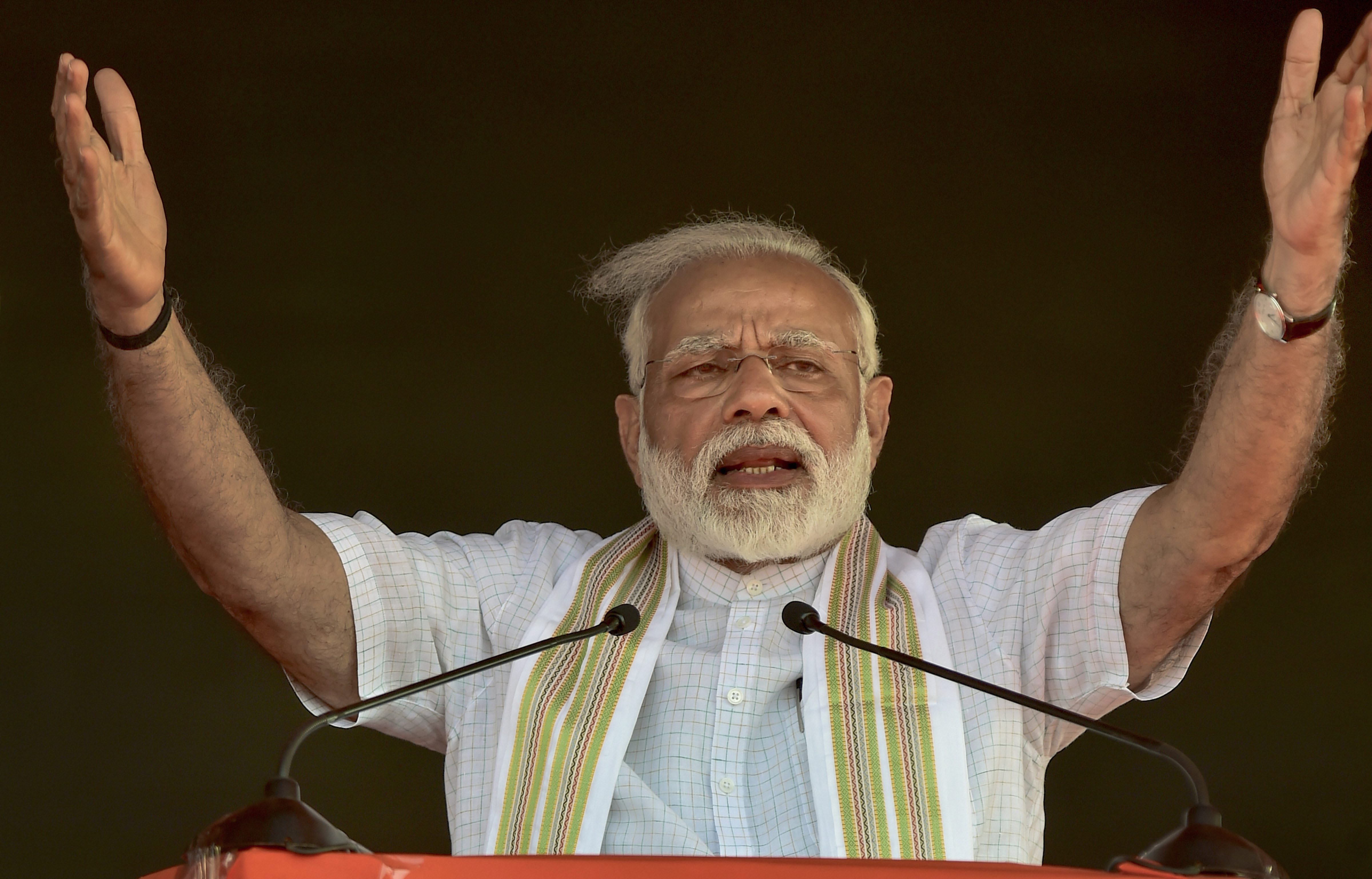 Prime Minister Narendra Modi addresses a BJP rally in Tiruppur, Tamil Nadu. (Source: PTI)