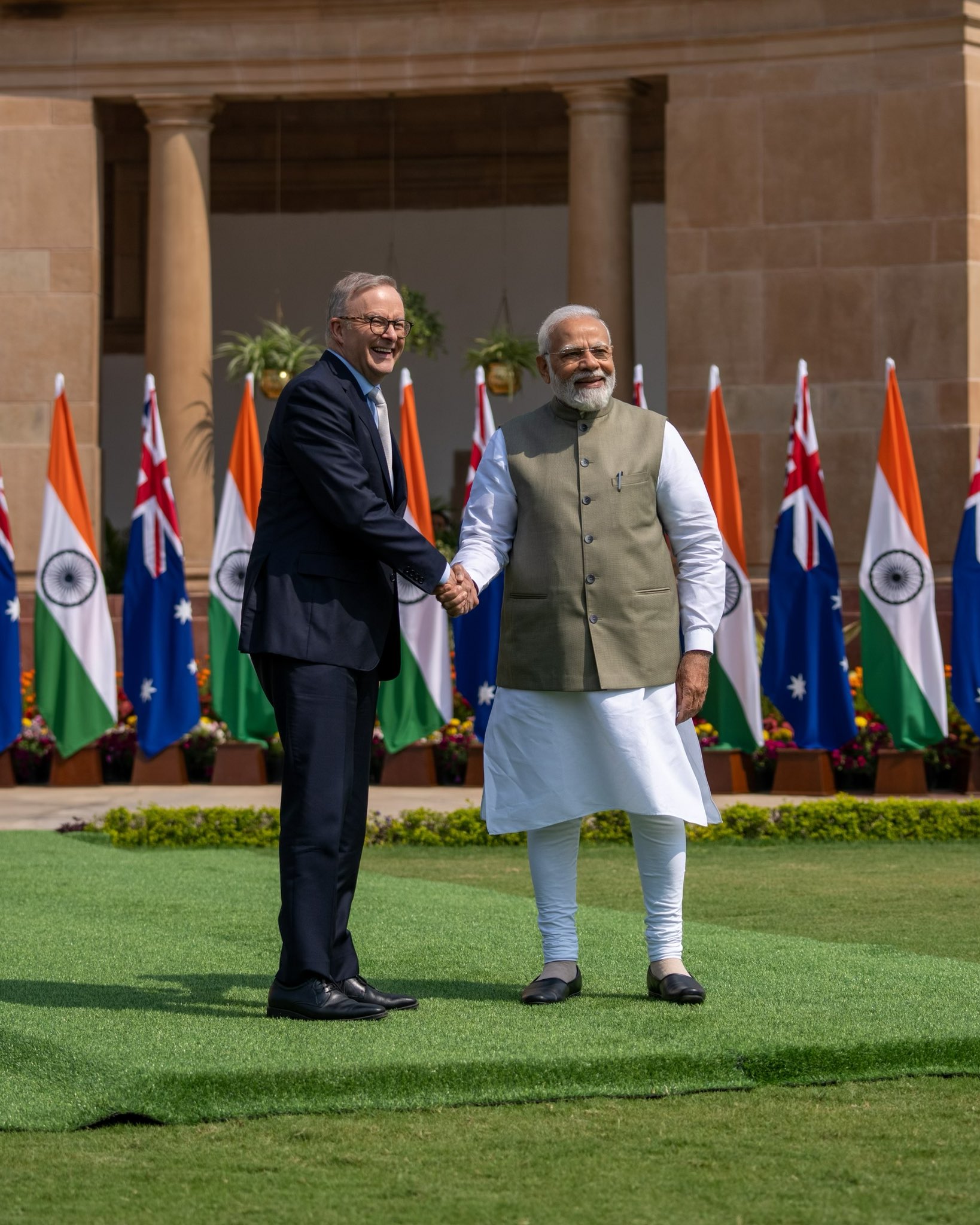 "Australia and India are great friends. We are partners and we are building that partnership even stronger each and every day," Albanese said after he was accorded a ceremonial welcome at the Rashtrapati Bhavan this morning.