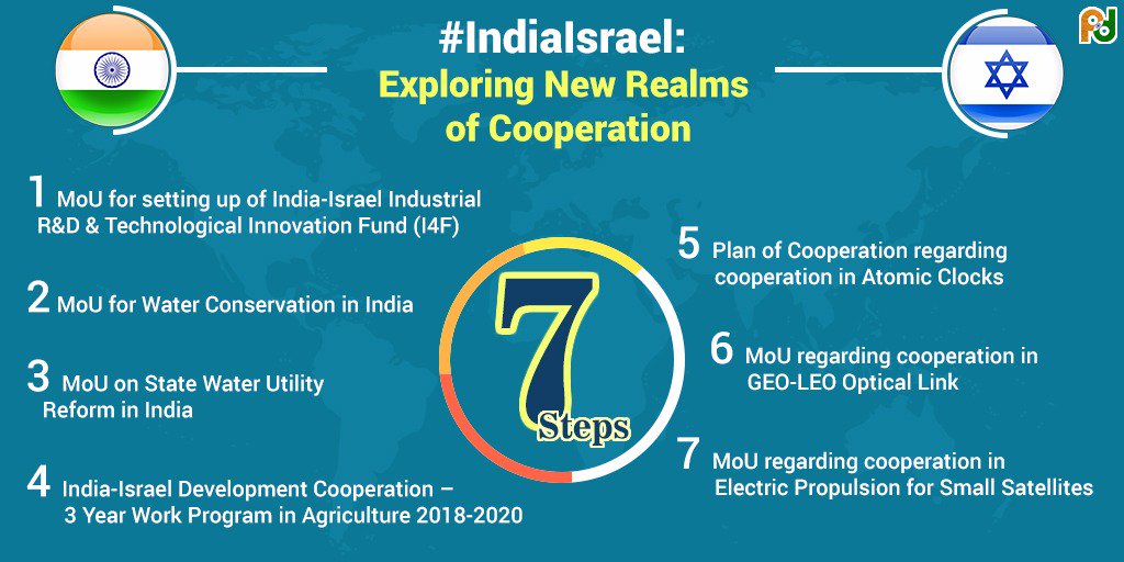 - One of the MoUs was for setting up of $40 million India-Israel Industrial Research and Development (R&D) and Technical Innovation Fund.