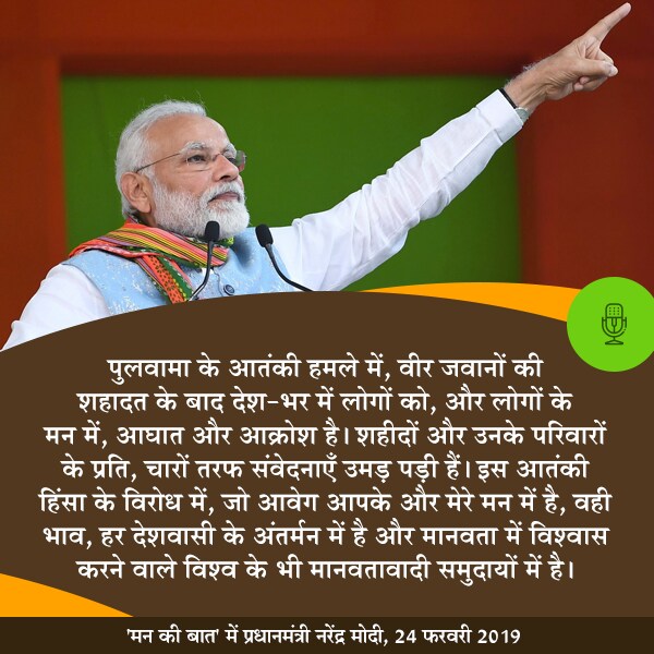 PM Modi hailed the sacrifice of the 40 CRPF jawans in the 53rd episode of Mann Ki Baat. He described the sorrow and the courage displayed by the families of the CRPF personnel who died in the attack.