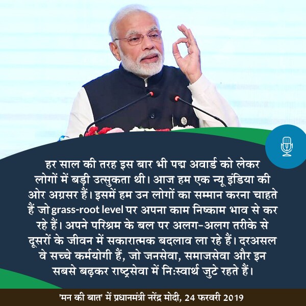 Like every year, this time there was great anticipation for the Padma award. Today, we are facing a new India. We want to honour people who are doing making changes at the grass-root level.PM Modi
