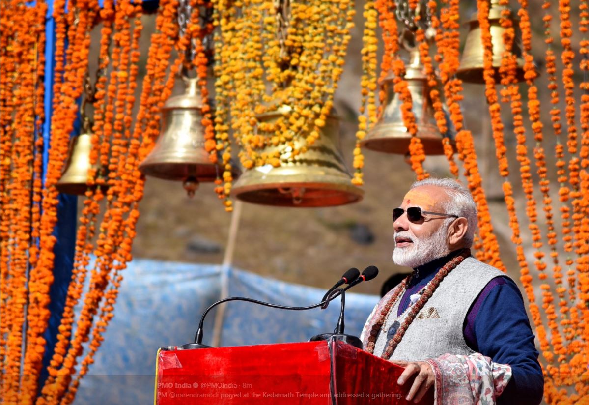 Prime Minister Narendra Modi addresses the crowd on his visit to Kedarnath shrine. (Source: PMO Twitter Handle)