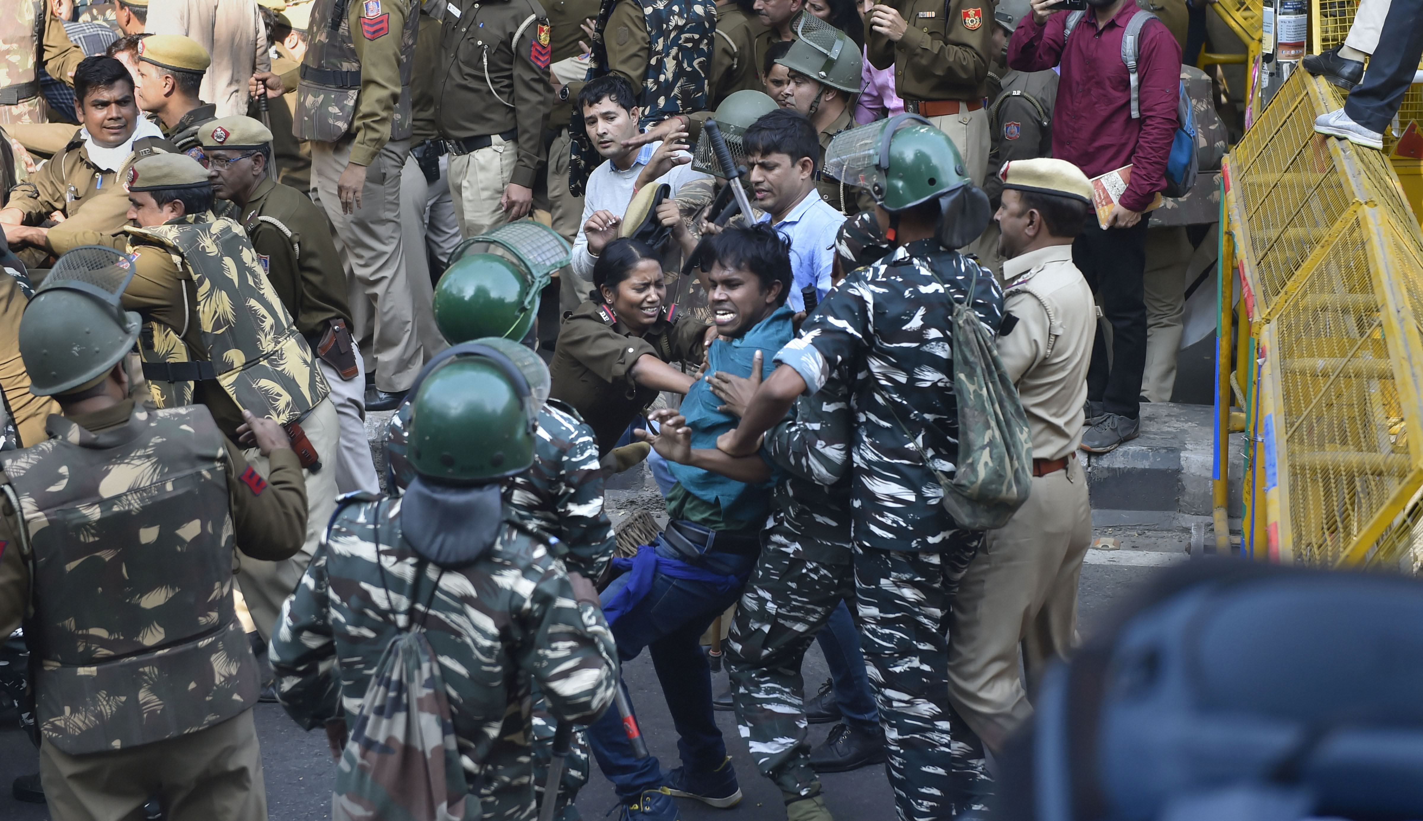 The police detained about 100 protestors, including JNUSU president Aishe Ghosh, secretary Satish Chandra Yadav and former JNUSU president N Sai Balaji. The students were ultimately stopped outside the Safdarjung Tomb, where, they alleged, the police baton-charged them, an allegation denied by the men in uniform. On Saturday, an FIR was registered against unidentified persons over an incident of "defacement" of the JNU's administration block.