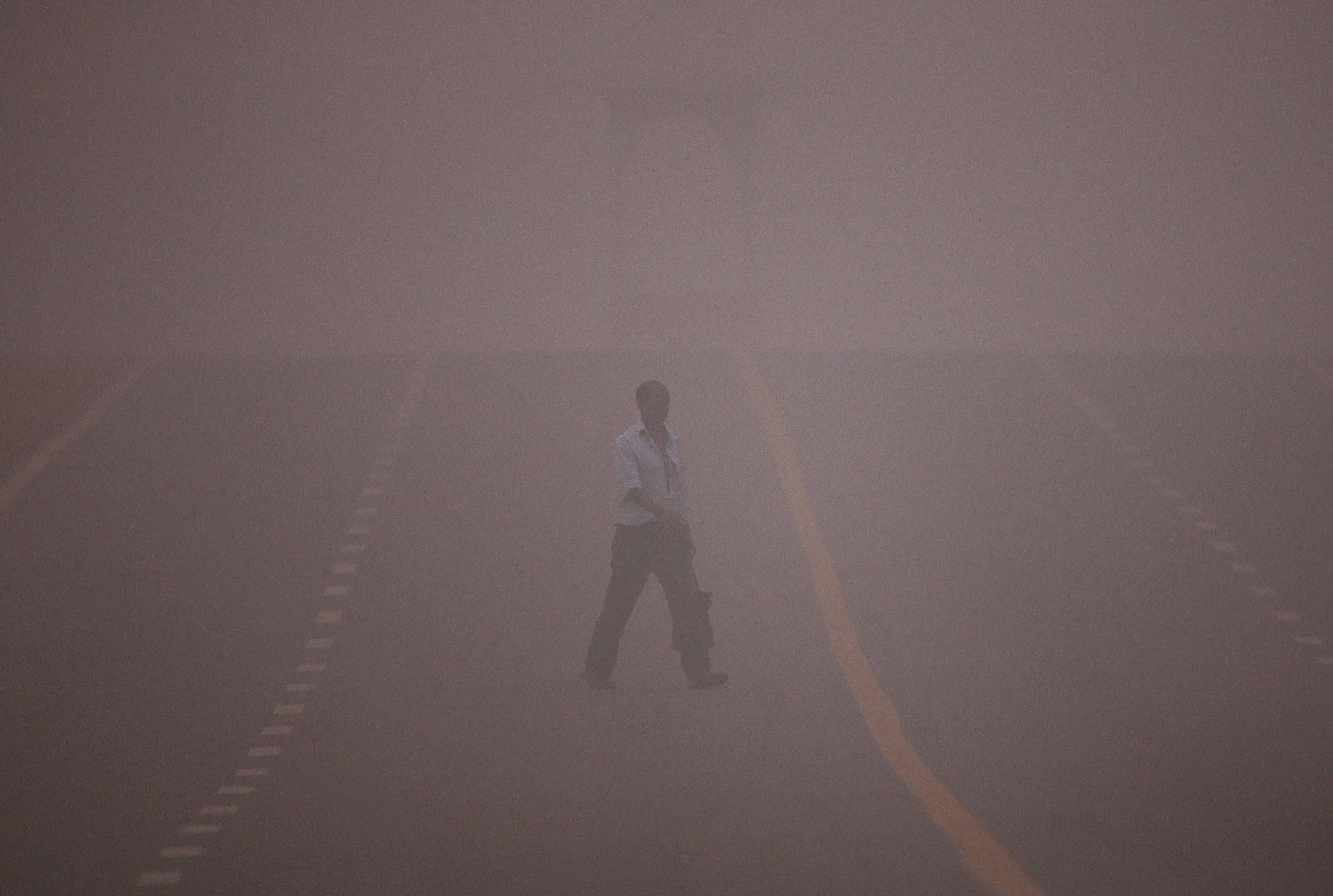 A man crosses a road amidst heavy smog in New Delhi. (Photo: Adnan Abidi/Reuters)
