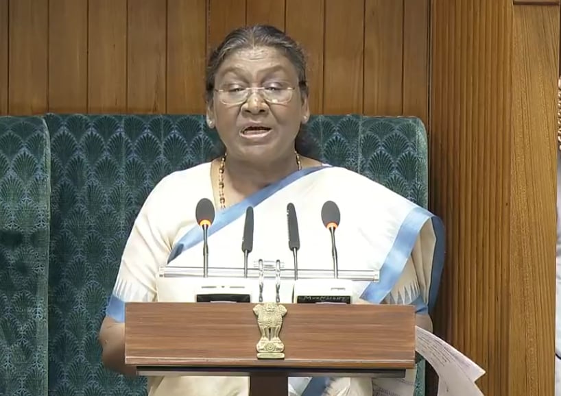 President Droupadi Murmu during her address to the joint sitting of Parliament. (Source: Sansad TV screengrab)