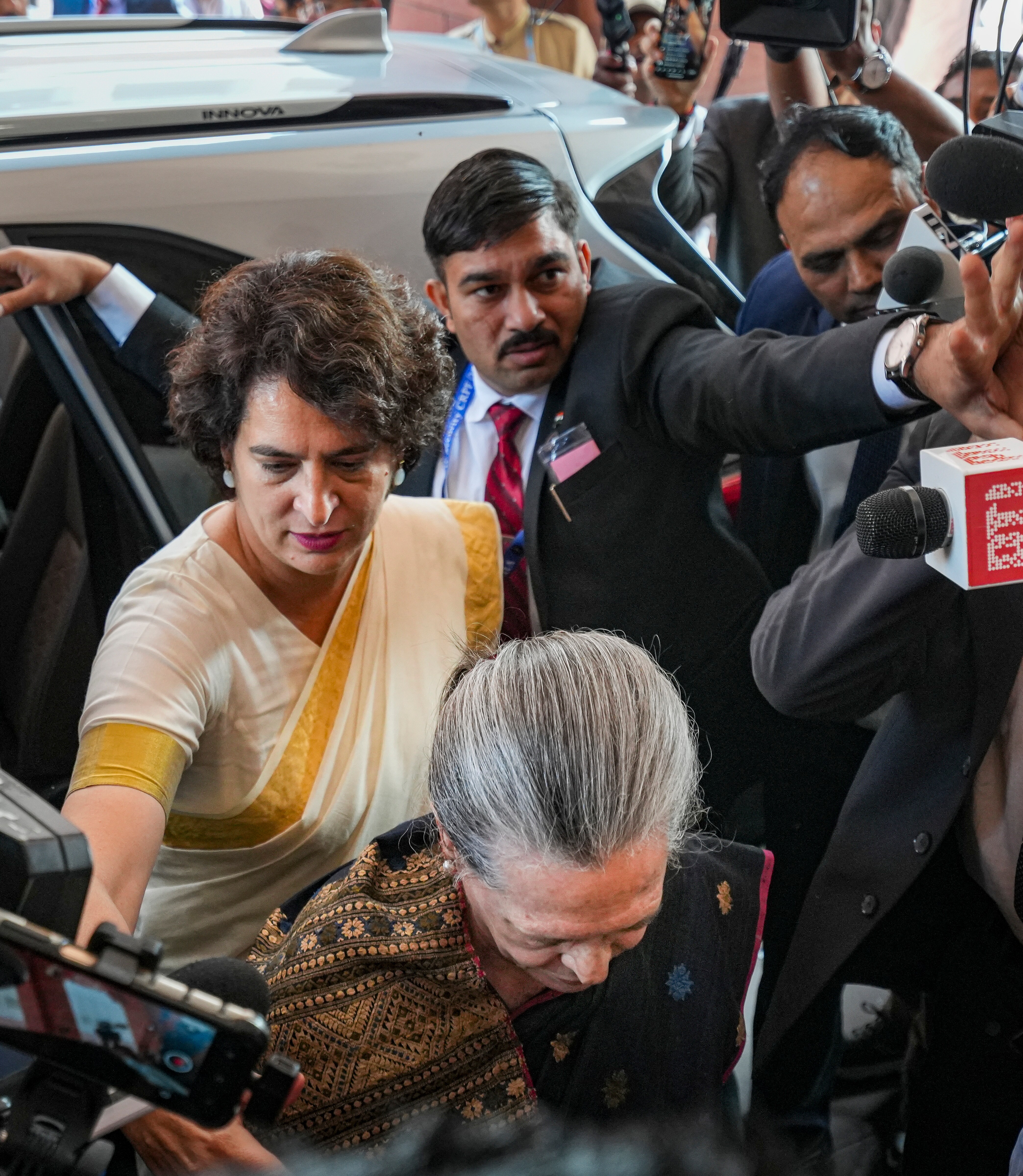 The 52-year-old, who joins her mother Sonia and brother Rahul as an MP in what is a rare instance of three members of a family together in Parliament, took affirmation in Hindi, while holding a copy of the Constitution soon after the House met.