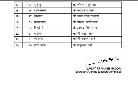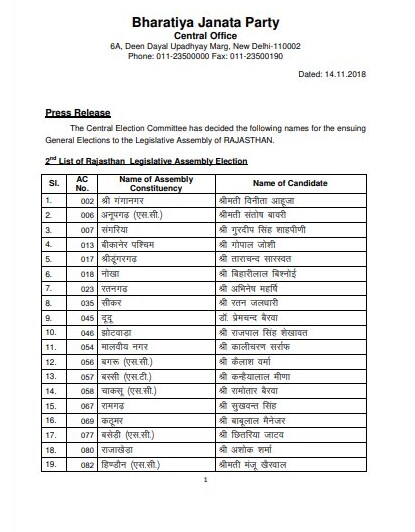 भारतीय जनता पार्टी ने राजस्थान विधानसभा चुनाव के लिए पहली सूची जारी की। pic.twitter.com/v8RTbWJcQE