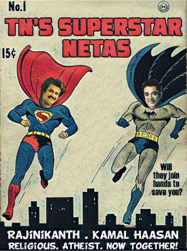 Superman and Batman may be world famous. But they aren't real. And in Tamil Nadu it's Rajinikanth and Kamal Haasan who are deified, worshipped and bathed in full cream Aavin milk. Now that they've ruled the silver screen for over four decades, they both wish to jump out of the screen, and on to the political stage.