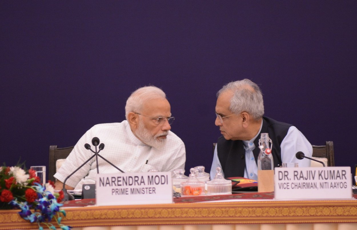 Niti Aayog Vice Chairman Rajiv Kumar with Prime Minister Narendra Modi. (Photo: Rajiv Kumar/Twitter Handle)