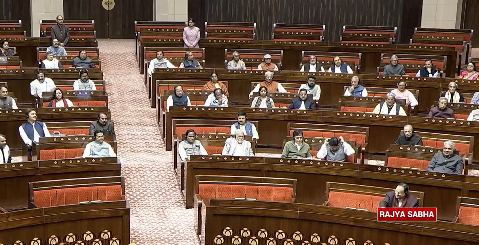 Rajya Sabha proceedings witnessed two adjournments in the morning session and met again at 2 p.m. as opposition parties led by the Congress raised the issue of Parliament security breach.