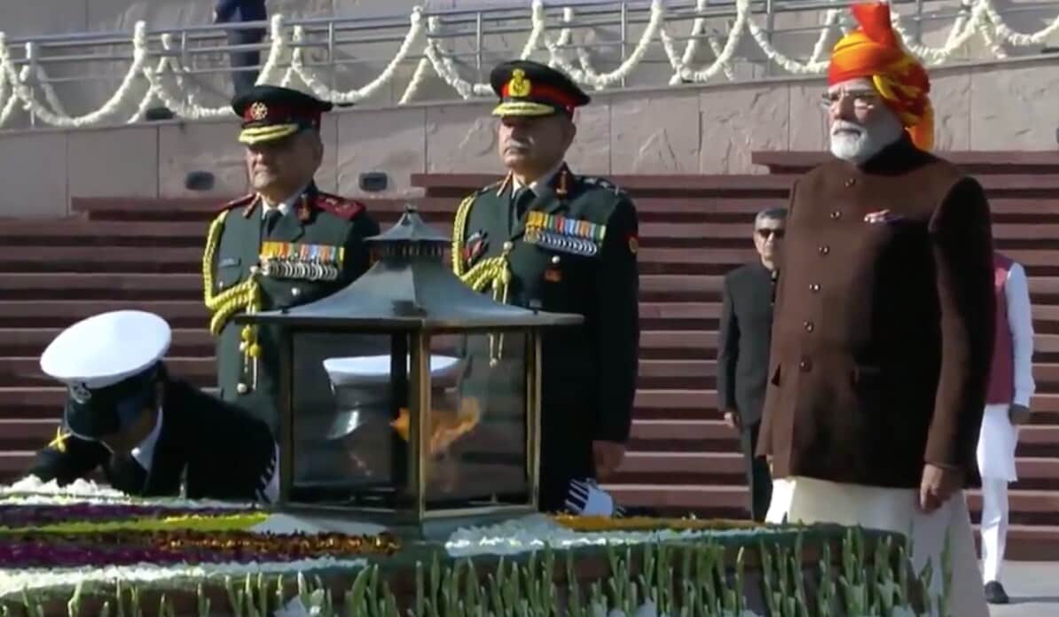 Prime Minister Narendra Modi on Friday paid tributes to the fallen soldiers at the National War Memorial here on the occasion of the 76th Republic Day.