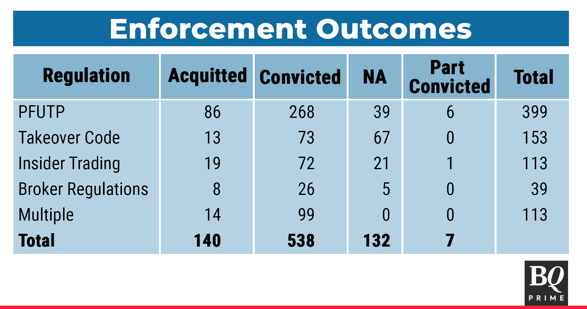 Enforcement can result in either acquittal or conviction of the person involved. In 80% of the cases, the regulator found them guilty of all the violations they were charged with.