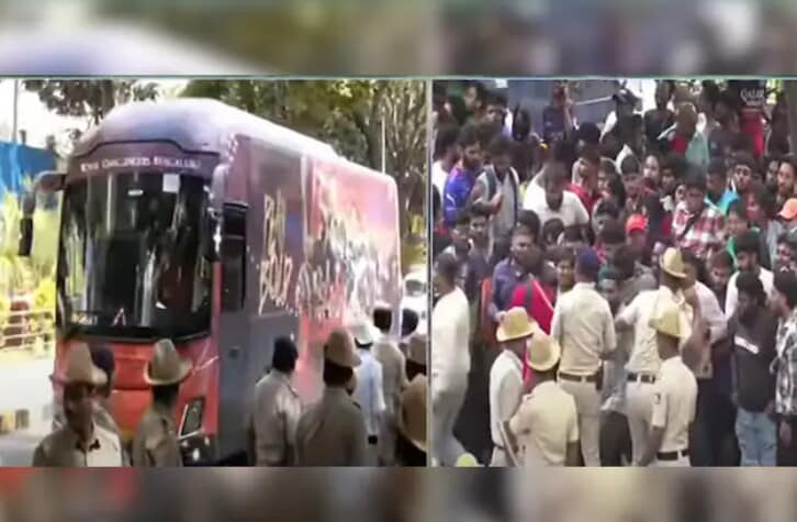 Before the stampede was reported, visuals that emerged on television and social media showed police trying to manage the scores of RCB supporters who turned up at the stadium to witness the felicitation of the team by the Karnataka Cricket Association.