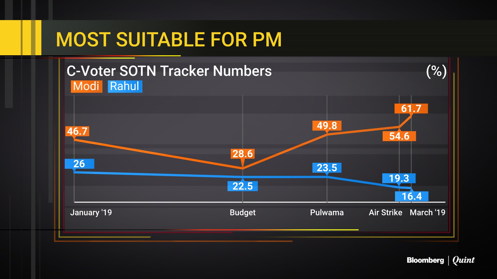 While Modi was the frontrunner even before the Balakot strikes, the Prime Minister has widened the gap after the Pulwama attacks and the strikes by the Indian Air Force that followed with a jump in popularity from 47 percent to 62 percent.