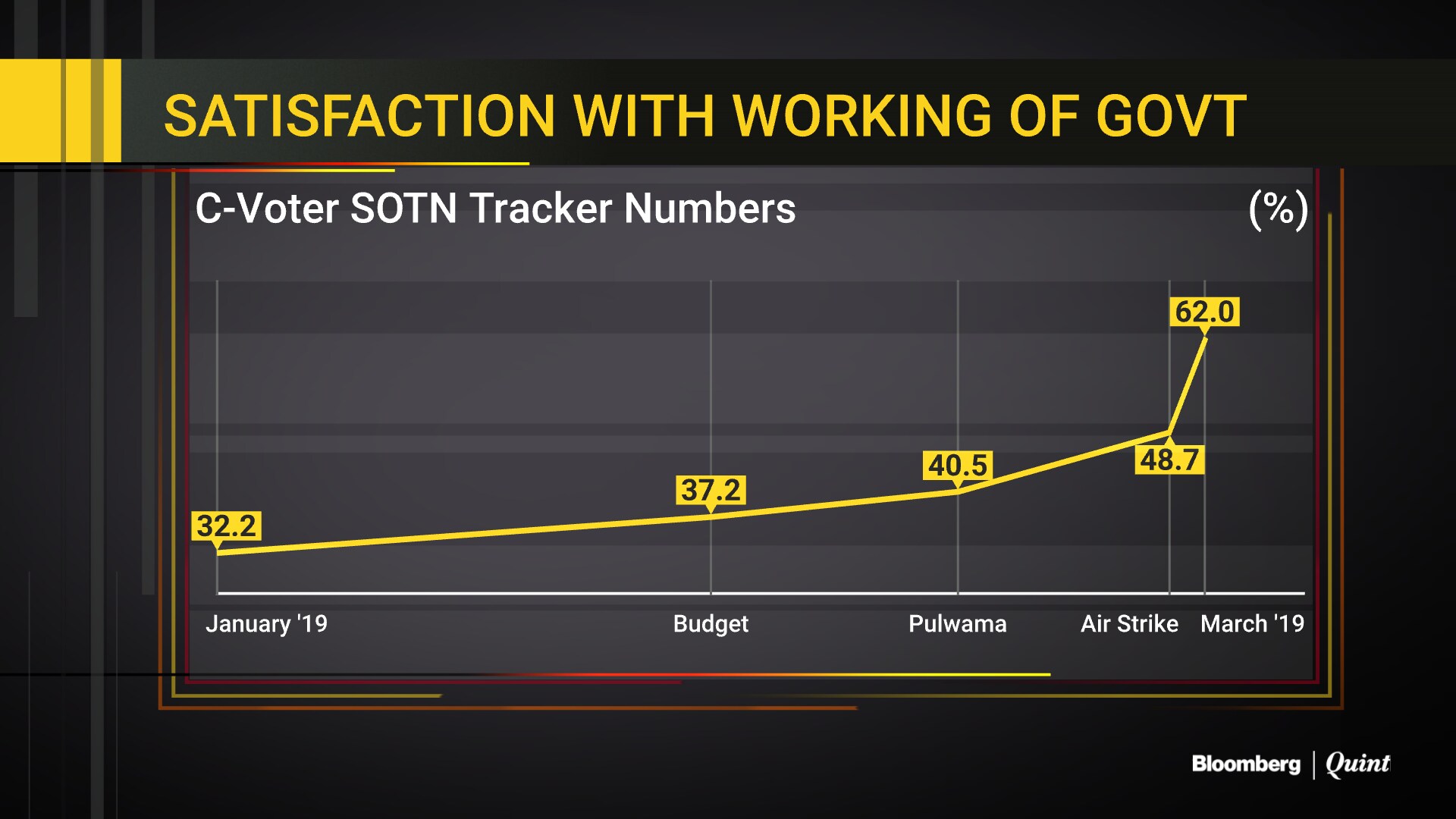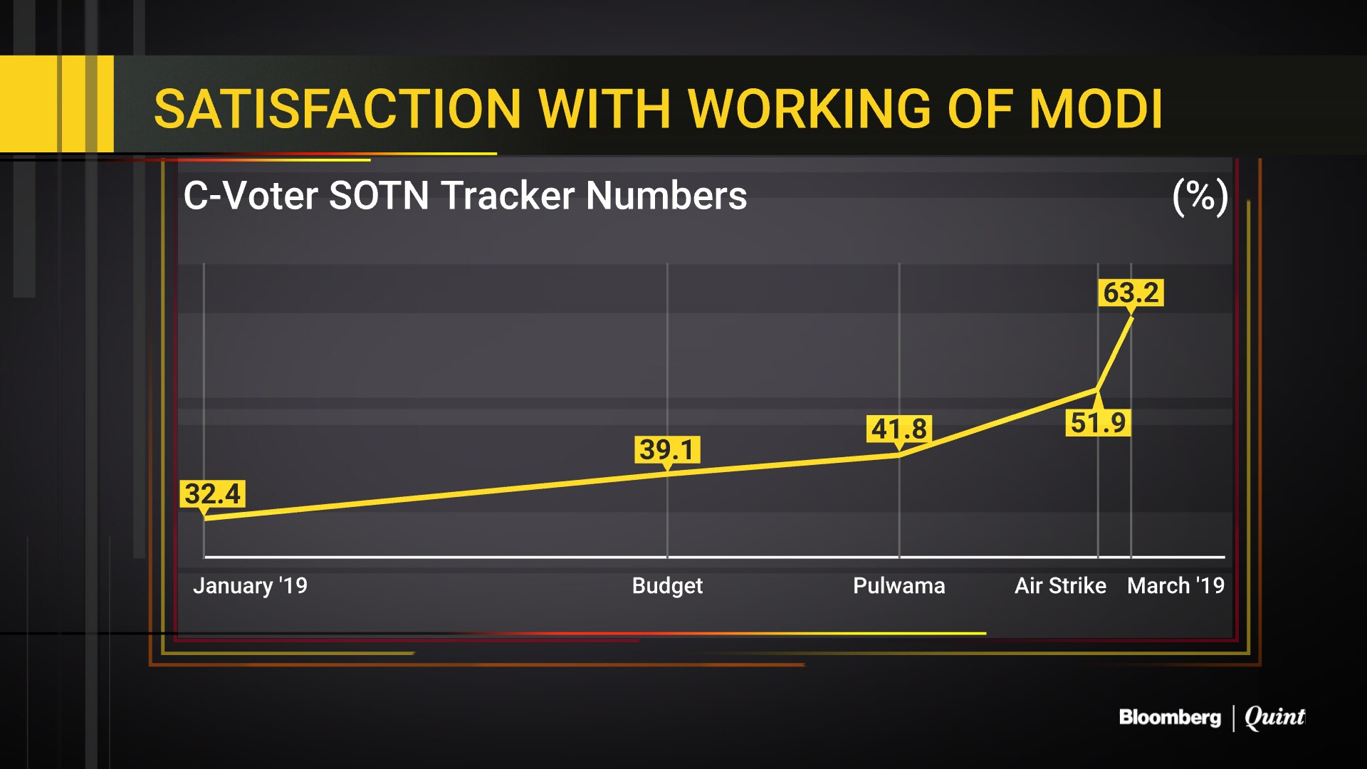 The net approval rating for the Narendra Modi-led government that stood at 32 percent in the beginning of the year rose to 62 percent by March 7. While there was a marginal improvement in approval ratings after the budget, the big uptick came after the Balakot strikes. A similar trend is noticed in the approval ratings for Modi .