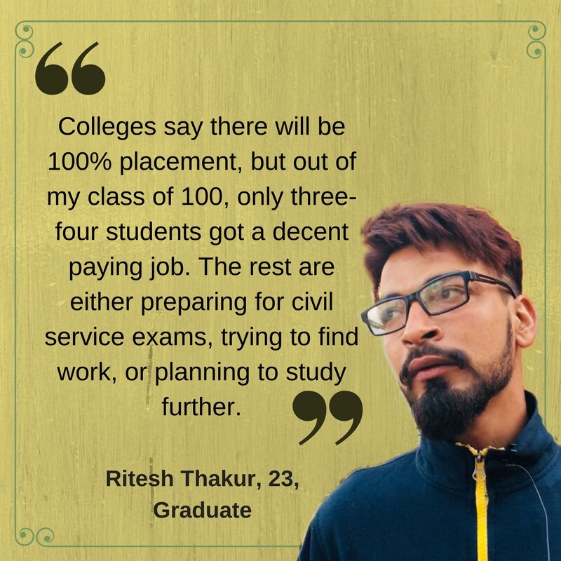 Twenty-three-year-old Ritesh graduated from college two years ago. But he is still without a job. He is frequently spotted mingling with boys who are three-four years his junior, outside the same tea-shop he hung out at while he was in college.