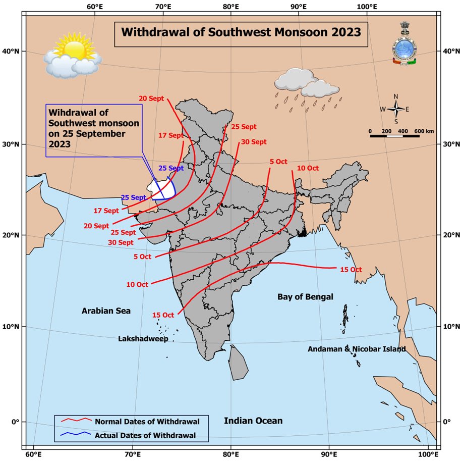 Monsoon 2023: The southwest monsoon has now begun to withdraw from parts of Southwest Rajasthan on September 25, which is eight days later than its usual date of September 17, according to the India Meteorological Department (IMD).