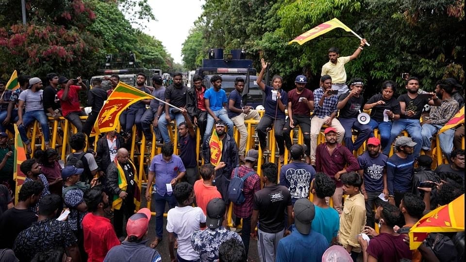 Few protestors entered to the President's House in Colombo are having a swim at the swimming pool.#LKA #SriLanka #SriLankaCrisis pic.twitter.com/A7dtzrzkj1Earlier, hundreds had started flocking to Colombo to join the protests seeking Rajapaksa's ouster as the country faces its worst economic crisis.