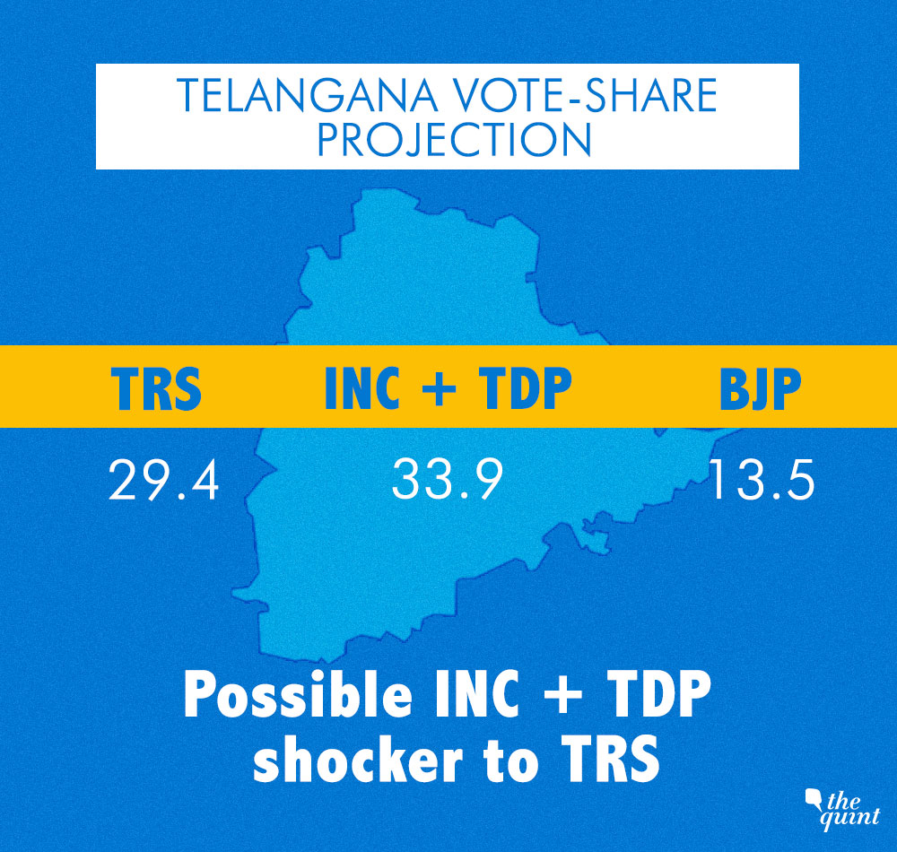 The INC-TDP alliance has changed the electoral landscape of the Telangana. The KCR-led TRS was expected to comfortably win the election, however, the TDP and INC bonhomie has upset those plans. The INC-TDP alliance leads the polls by 4.5 percent vote share. This lead may get strengthened owing to the bandwagon effect that causes voters to switch to a side that is winning.