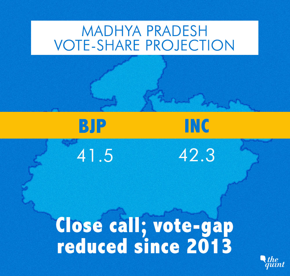 The vote share difference between Congress has narrowed down to 0.2 percent from 1.2 percent between August 2018 to November 2018. To put it in perspective, the 2013 Vidhan Sabha results were decided by 0.7 percent vote share between the BJP and the INC.