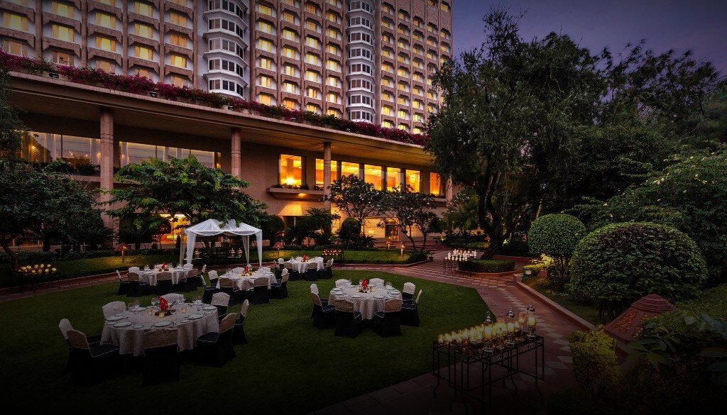 Tables arranged for dinner in the lawn of Taj Mansingh Hotel, Delhi, India (Source: Hotel Website)