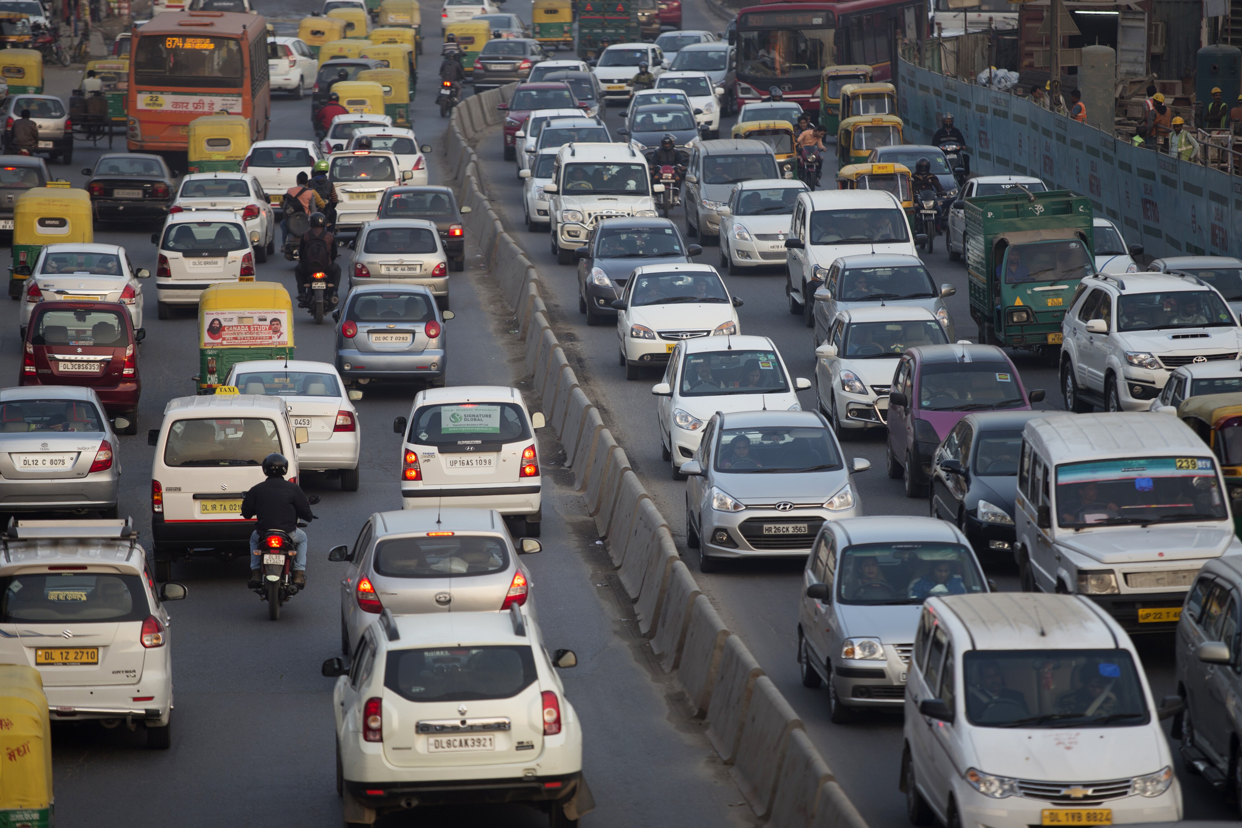 Traffic moves along a highway during evening rush hour in Delhi, India (Photographer: Prashanth Vishwanathan/Bloomberg)