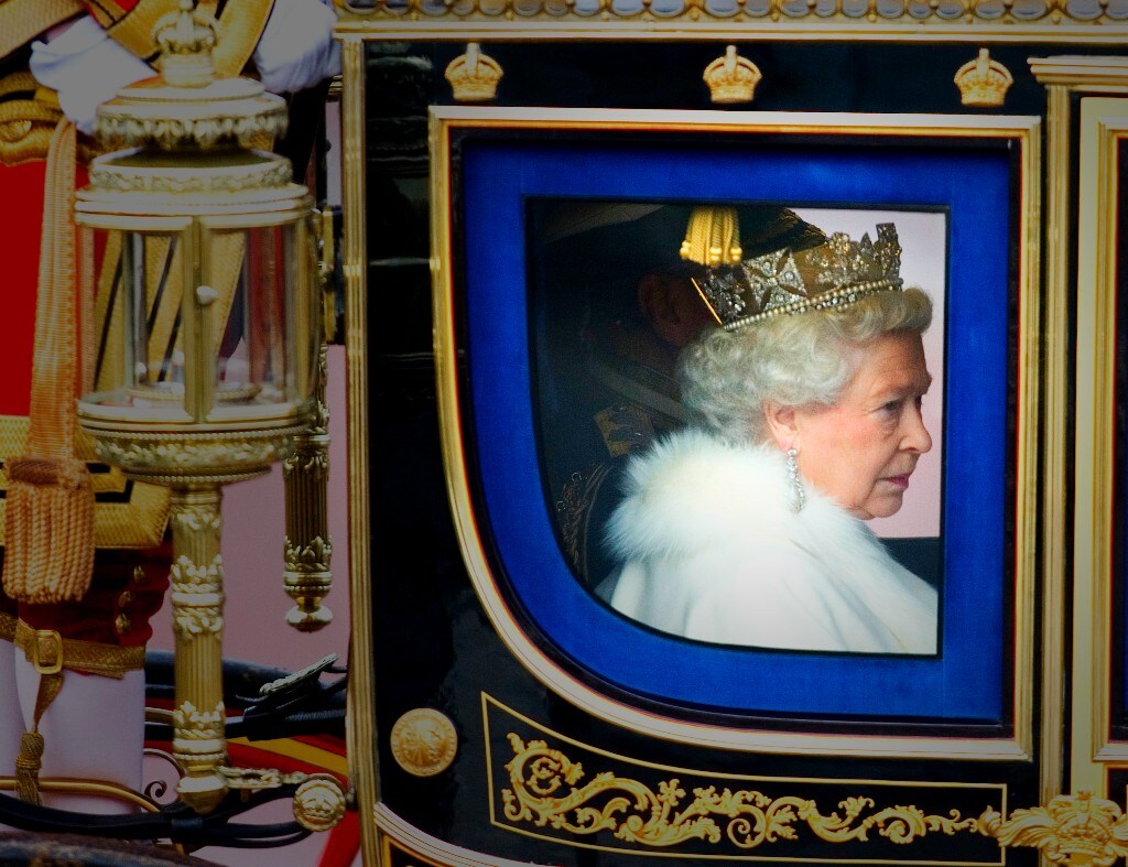 File photo of Britain’s Queen Elizabeth II looking out of her carriage as she leaves Buckingham Palace for the Houses of Parliament in London, U.K. (Photographer: Chris Ratcliffe/Bloomberg News)