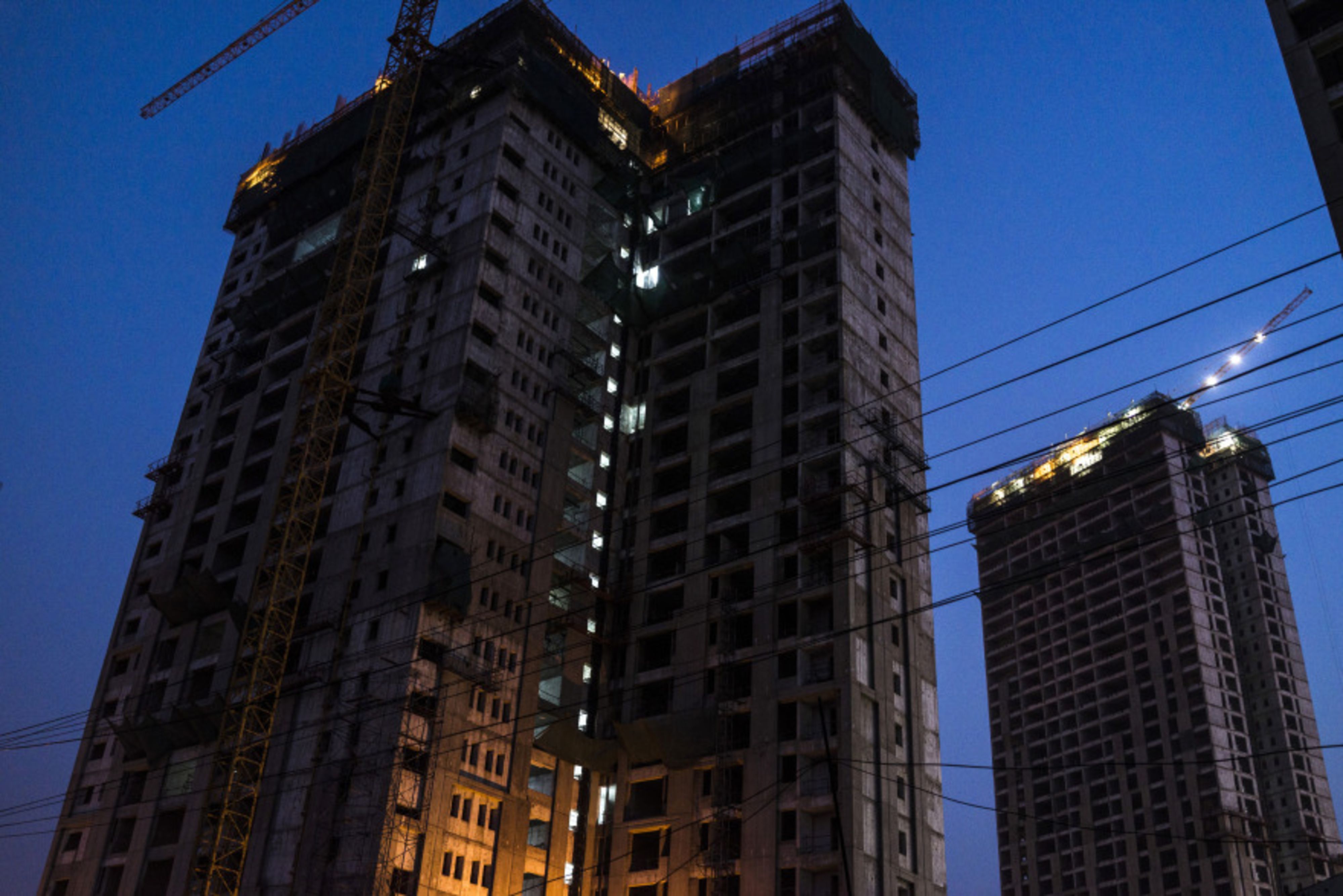 Buildings under construction stand in a Larsen & Toubro Ltd. construction zone in the Anandapur area of Kolkata, West Bengal, India. (Photographer: Sanjit Das/Bloomberg)