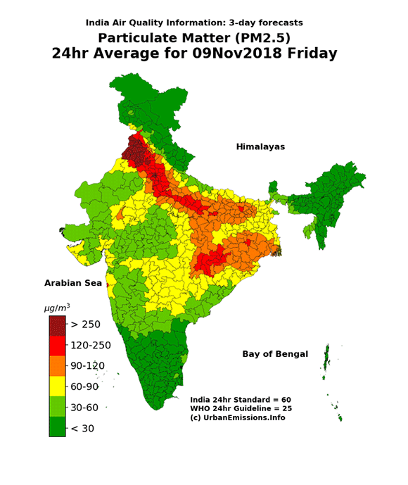 Most of the North Indian cities we mentioned are not likely to breathe safer air over three days to November 11, according to an-all India forecast of PM 2.5 levels by Urban Emissions, a non-profit research group. The air will clear up only after November 10, 2018, according to the forecast.