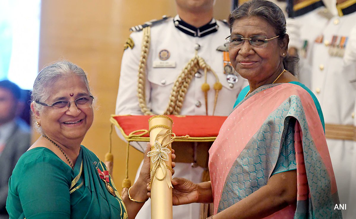 President Droupadi Murmu presents Padma Bhushan to Smt Sudha Murty for Social Work. A philanthropist, renowned author and Chairperson of Murty Foundation, she has initiated many projects in the fields of healthcare, education, art & culture, animal welfare and women's empowerment pic.twitter.com/qQJeEjnKfY