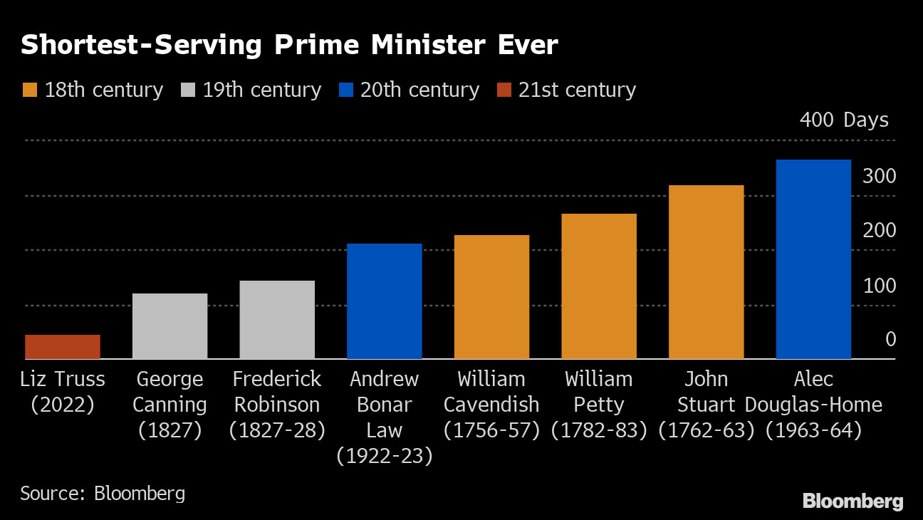 Truss, 47, said she was resigning after just 44 days in office, and is set to become the shortest-ruling prime minister in British history. The ruling Conservative Party aims to choose her successor by Oct. 28, and she will stay on as premier until then.