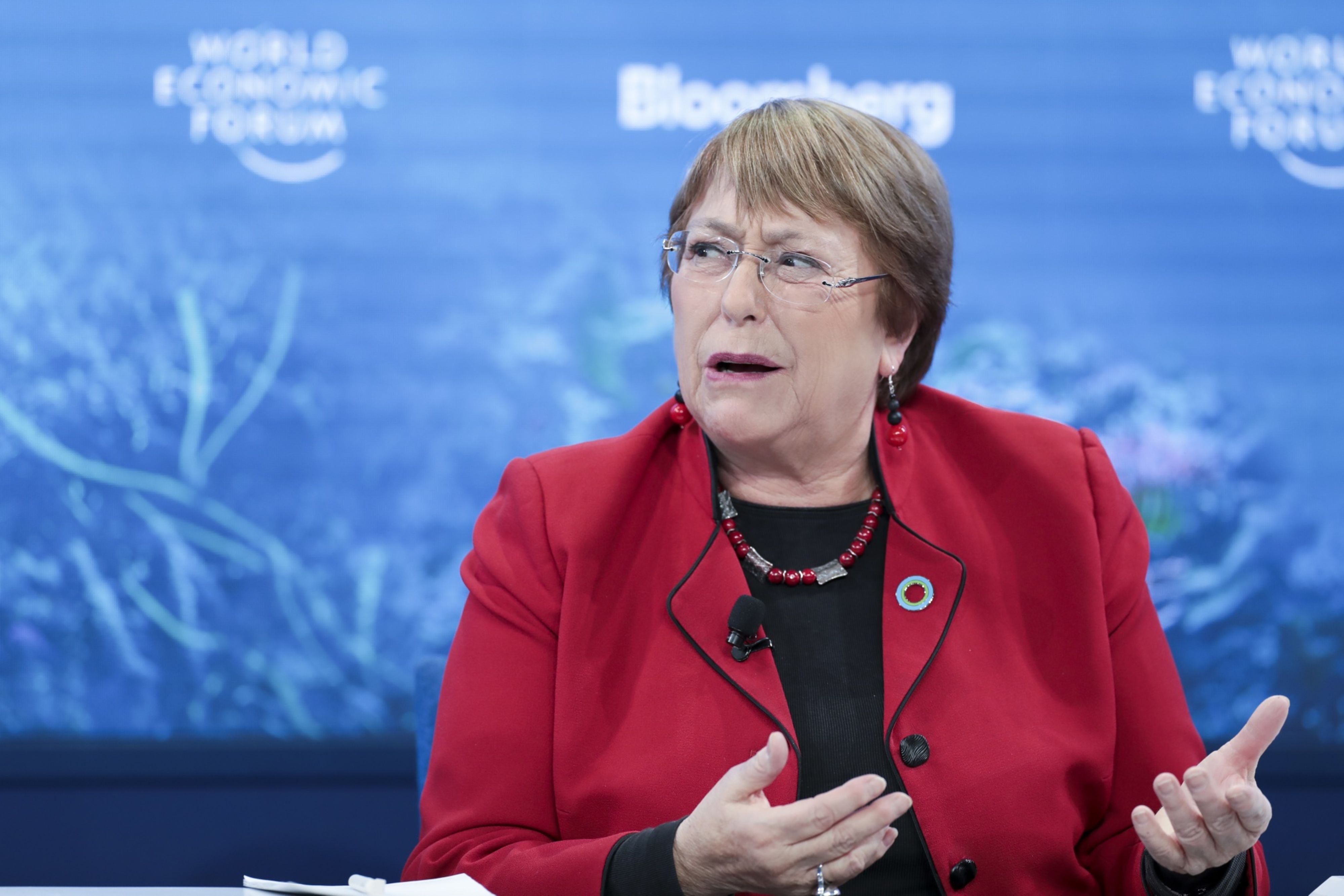 Michelle Bachelet speaks during a Bloomberg panel session on day two of the World Economic Forum (WEF) in Davos, Switzerland. (Photographer: Jason Alden/Bloomberg)